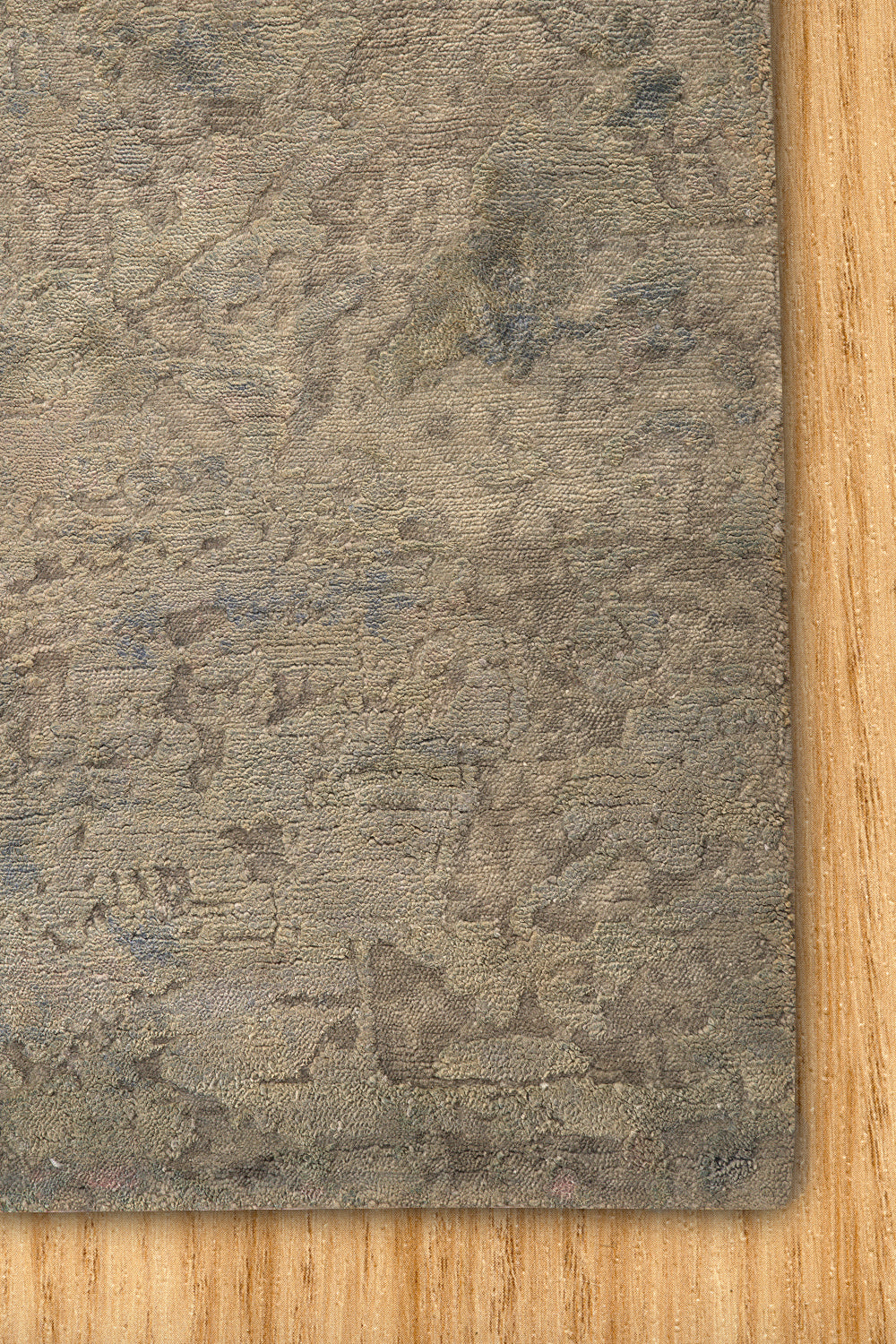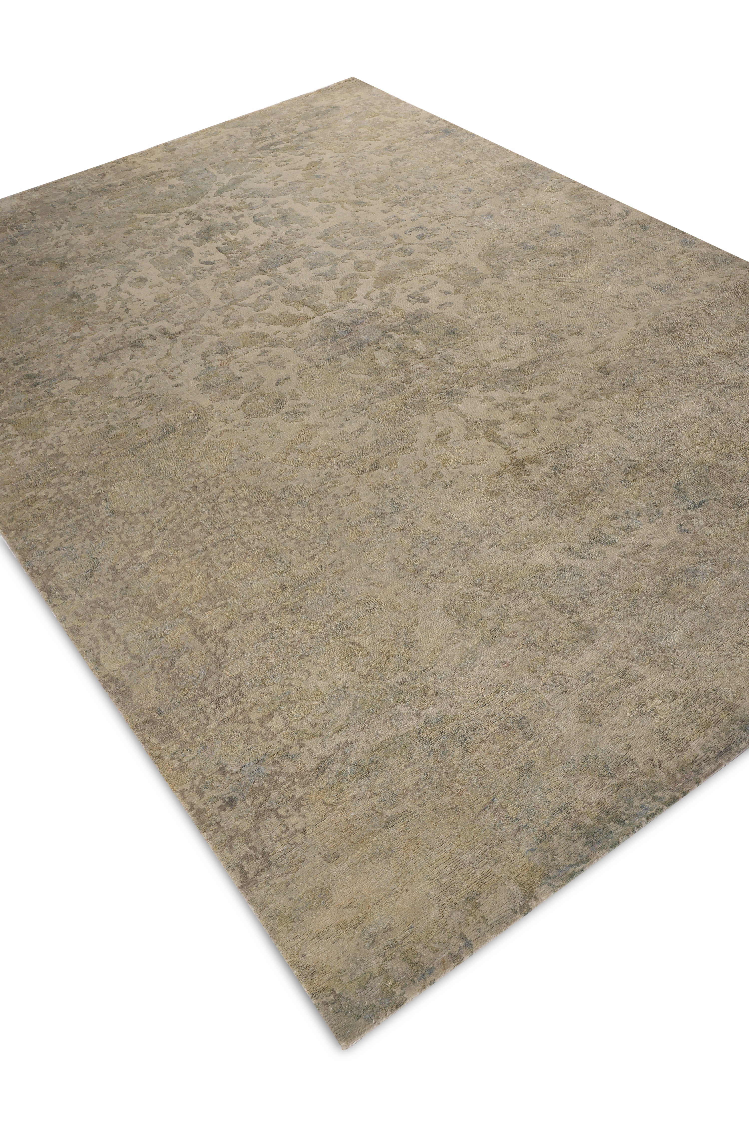 Step into a world of modern nostalgia with the Anant-Sutra rug, a beautifully crafted piece from our Odyssey Collection that blends wool and silk for a luxurious touch. This 6 x 9 ft hand-knotted rug, featuring a medium pile with a mild soft texture, showcases a distressed floral trellis pattern with faded geometric accents in soft dove grey, warm beige taupe, and hints of muted silver. Its design draws from Persian and Central Asian traditions, where floral trellis motifs symbolized growth and interconnectedness since the 16th century, often woven into rugs for ceremonial spaces. The distressed effect reflects a cultural narrative of timelessness, influencing decorative arts across trade routes with its enduring elegance. The cozy feel underfoot makes it ideal for living rooms or dining rooms seeking a vintage-inspired accent.