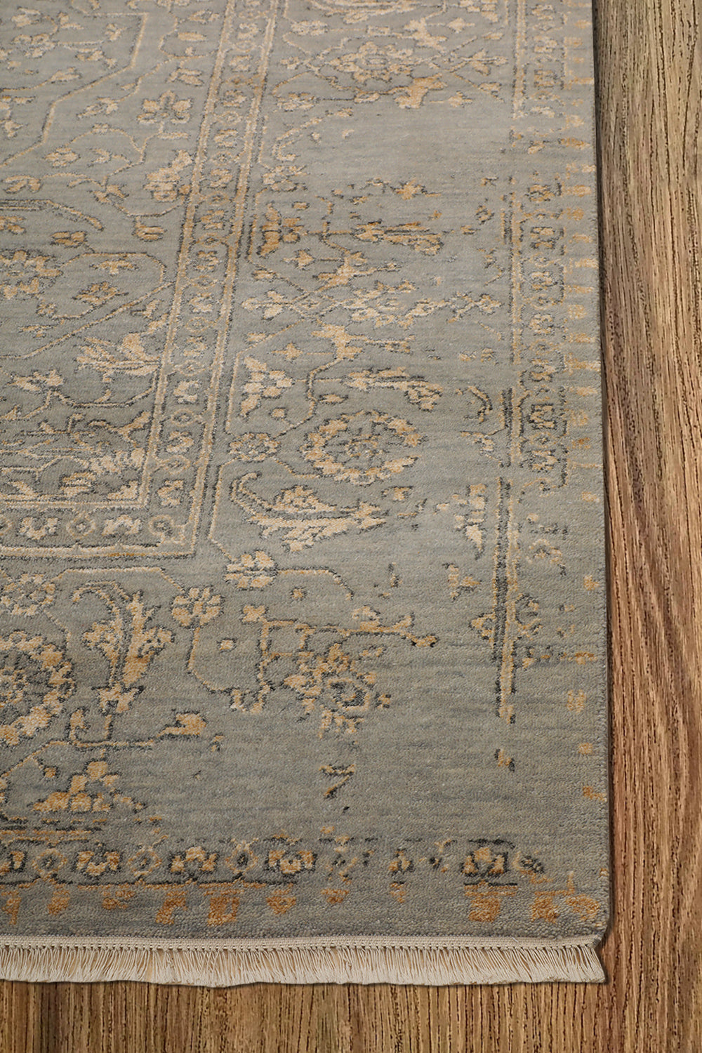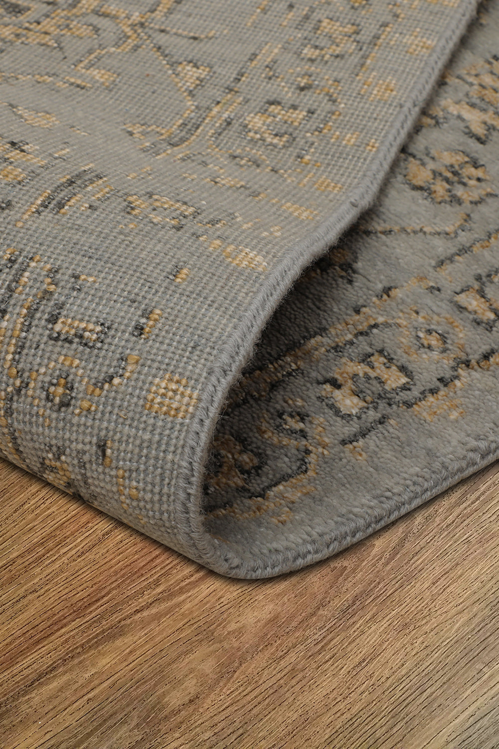 Crafted with mild softness and a medium pile, the wool provides both comfort and durability, perfect for high-traffic areas. The subtle texture enhances its luxurious feel underfoot while maintaining its elegant appearance over time. The Vintage & Distressed design brings a regal touch to modern interiors, weaving together past and present in a seamless narrative of craftsmanship and legacy.