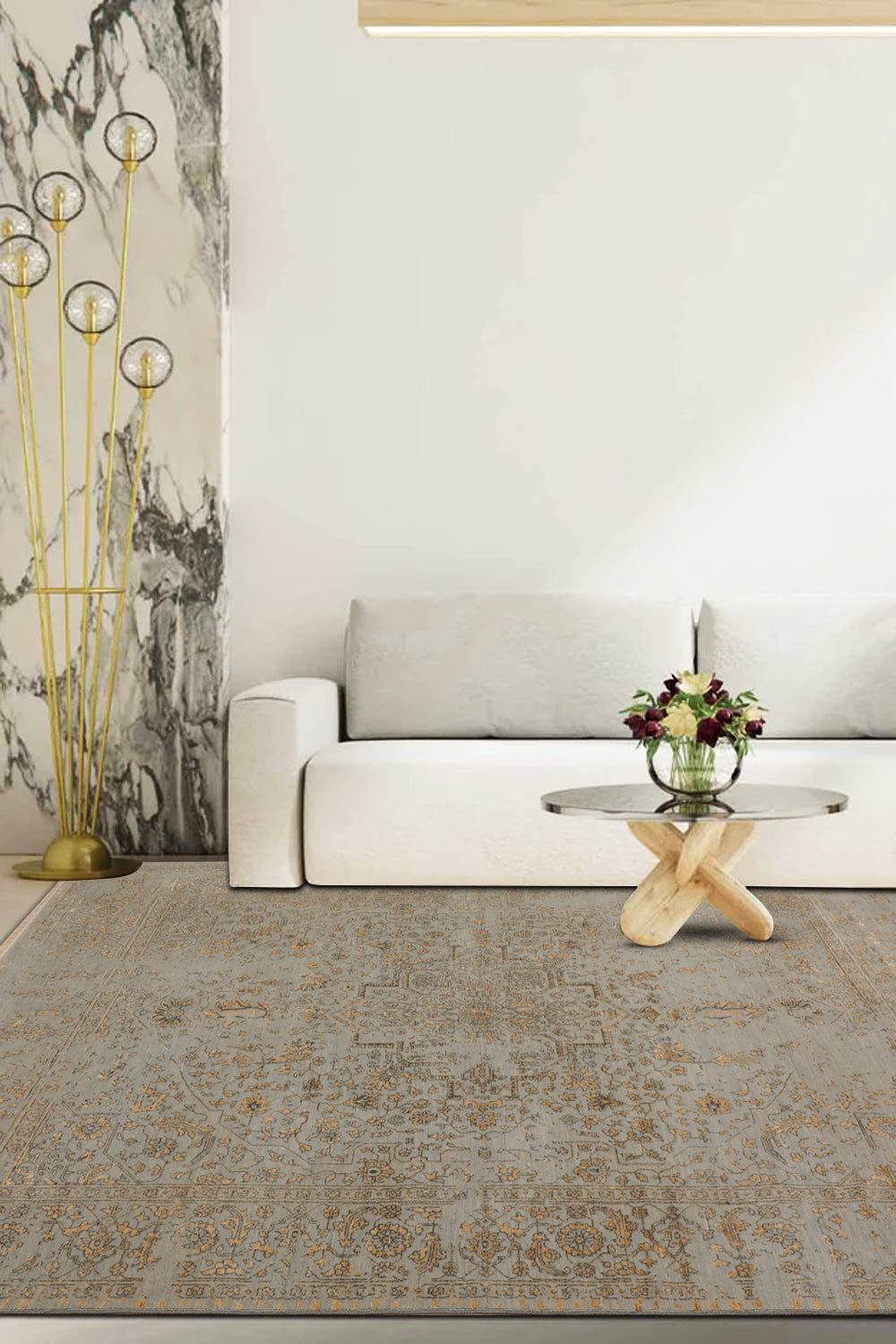 Inspired by vintage rugs, this design exudes a subtle, lived-in charm, where the distressed patterns give the carpet an aged, yet refined, look. The artful combination of faded tones and intricate detailing evokes a sense of history and grandeur, as if the carpet has been part of your home for generations. This rug speaks to those who appreciate the blend of classic and contemporary styles, offering an heirloom quality without the heaviness of traditional designs.