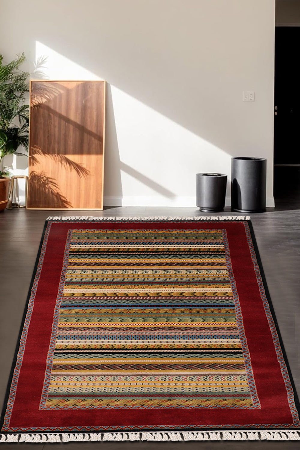 KR00226 Maroon/Yellow Hand Knotted Rug
