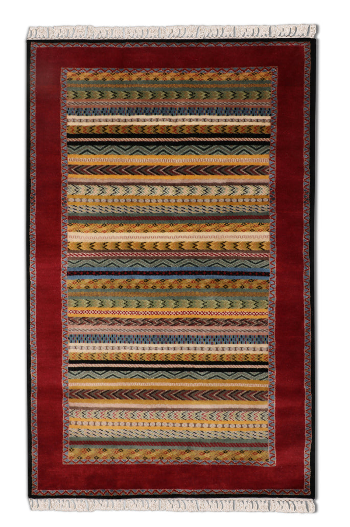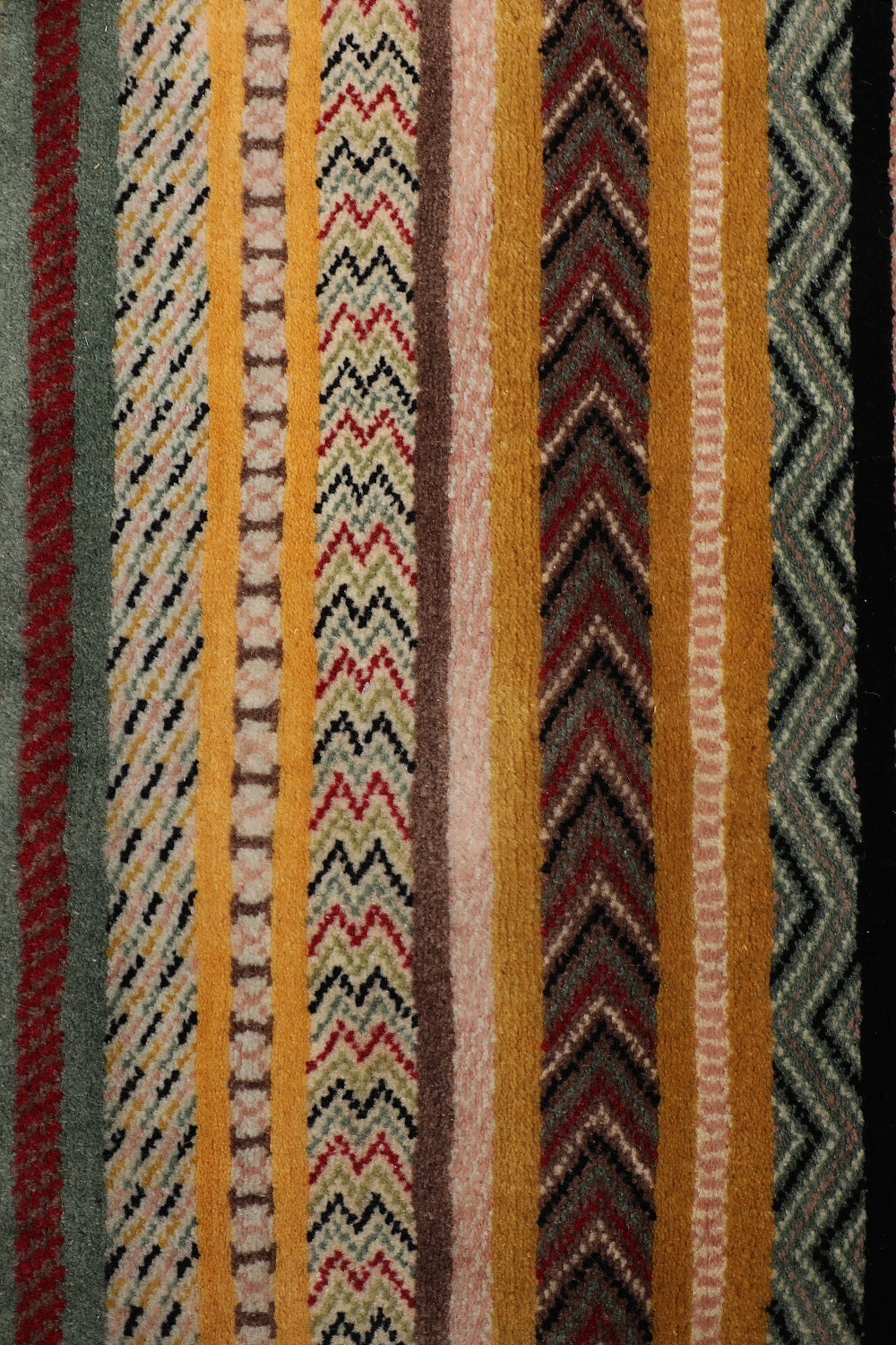 Enhance your home with this rectangular rug, where every knot weaves a story of historical inspiration and modern creativity. The abstract stripe design, inspired by modernist art and tribal heritage, complements both bold and minimalist interiors with its dynamic patterns. Ideal for modern homes, it blends durability with a textured appeal, creating a striking yet cozy focal point. Its warm tones transform any room, infusing it with a sense of cultural depth and innovative charm. Discover a rug that bridges the past’s artistry with today’s living spaces.