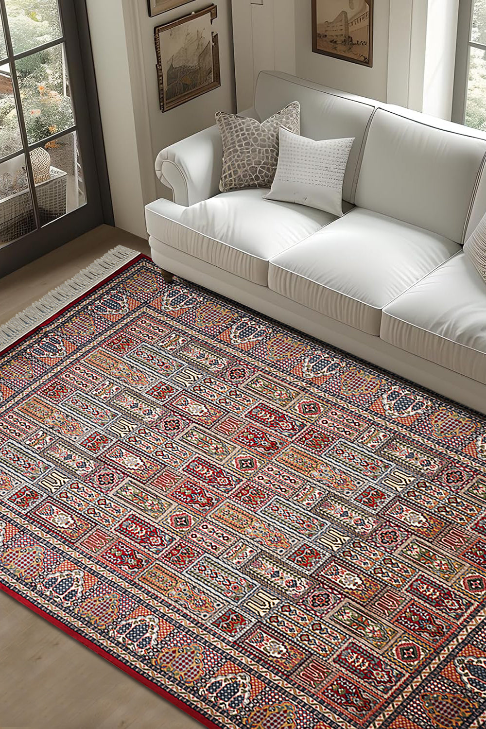 This Indian traditional carpet bridges the old and new—an exquisite dance between time-honored patterns and contemporary sensibilities. The medium pile adds durability and comfort, while the mild softness invites you to linger. Perfectly suited for living spaces that demand both luxury and heritage, this royal rug transforms any room into a haven of timeless beauty.