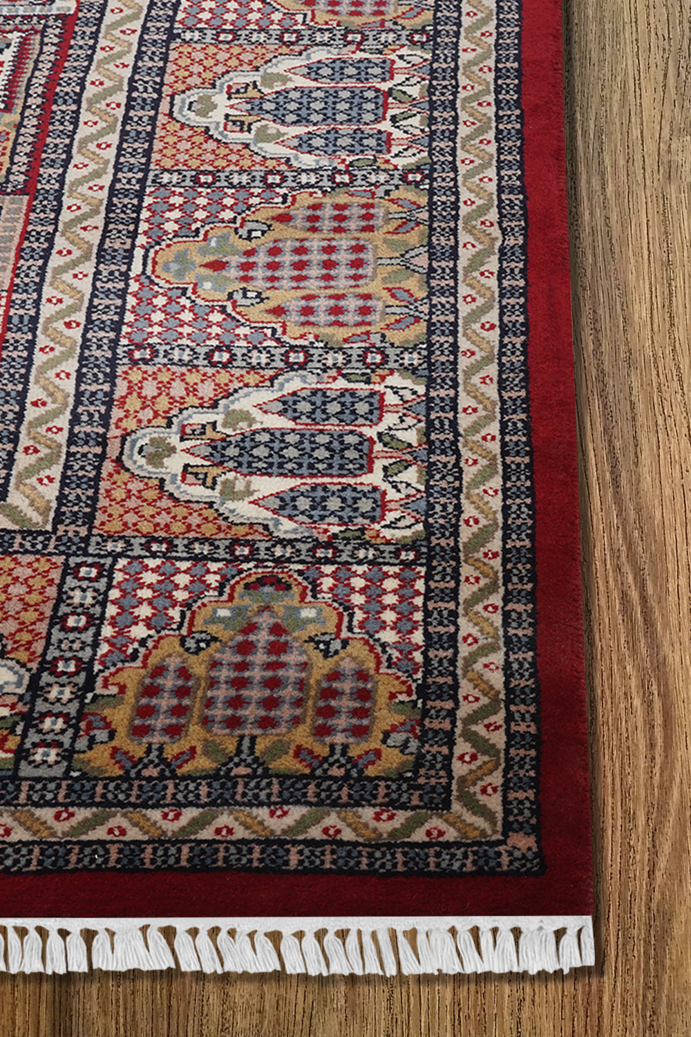 KR00031 Crimson Red/Cream Hand Knotted Rug