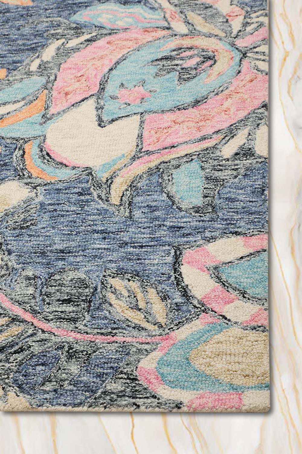 Elnaz - Hand tufted Wool Rug In Blue/Cream
