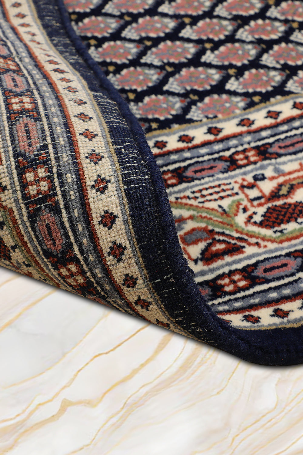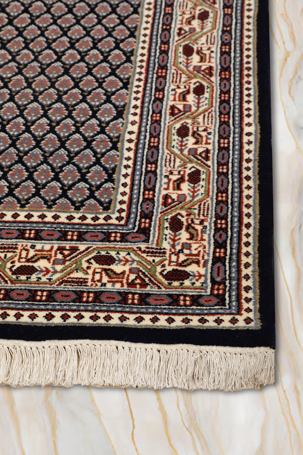 KR00213 Navy Blue/Cream Hand Knotted Rug