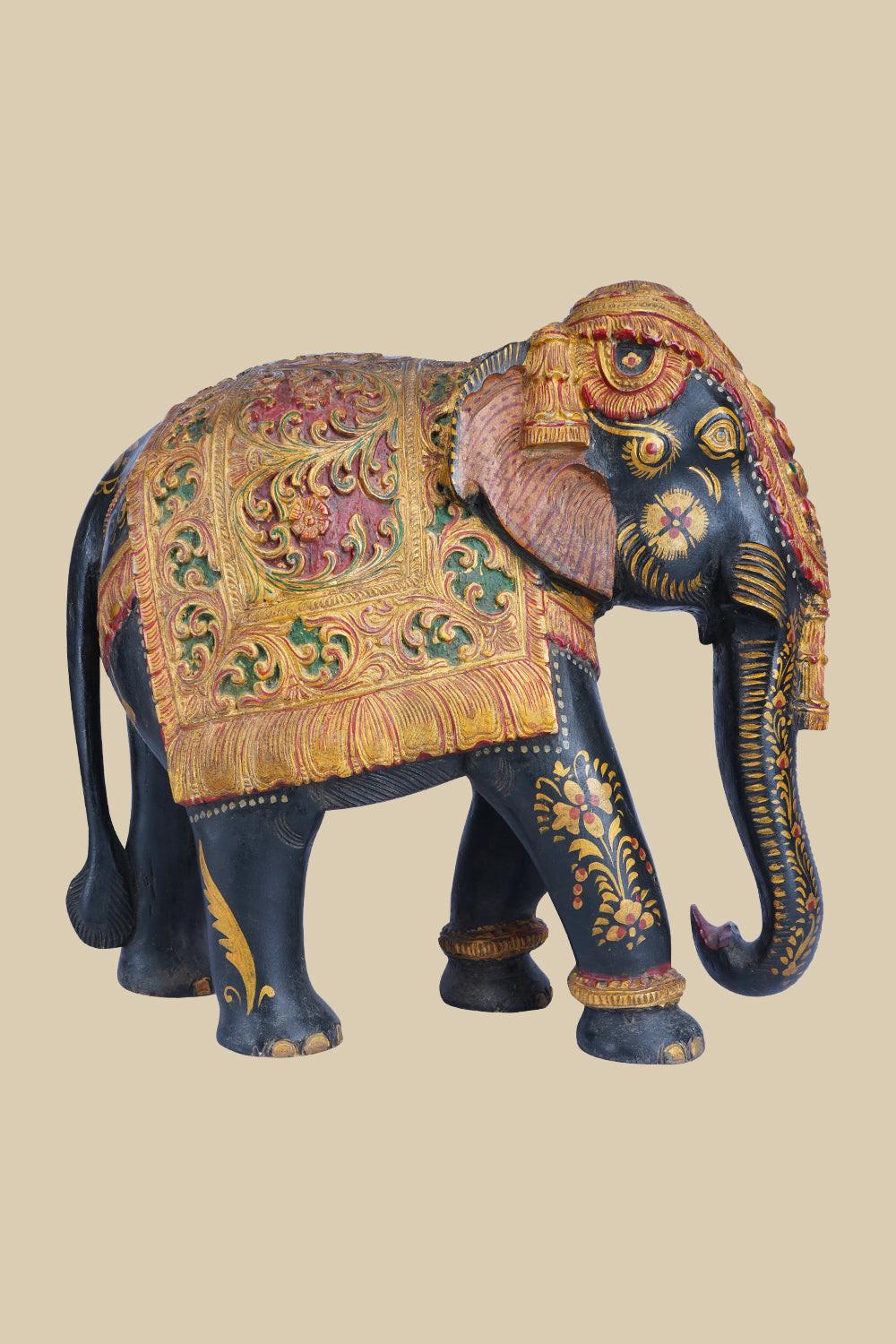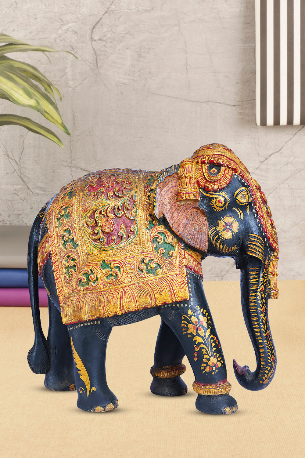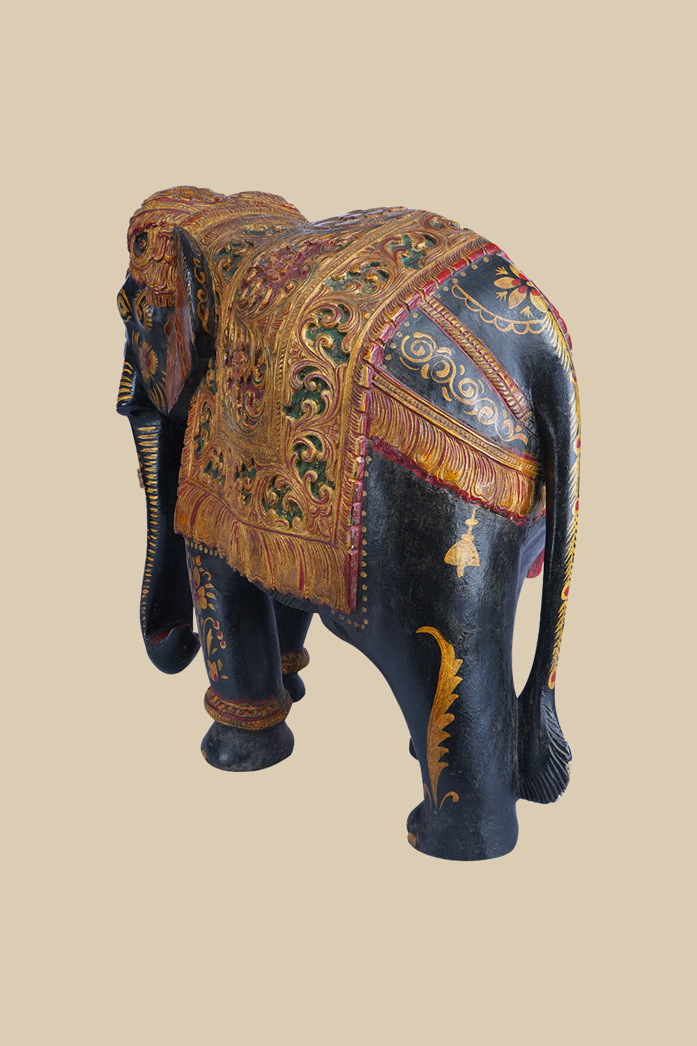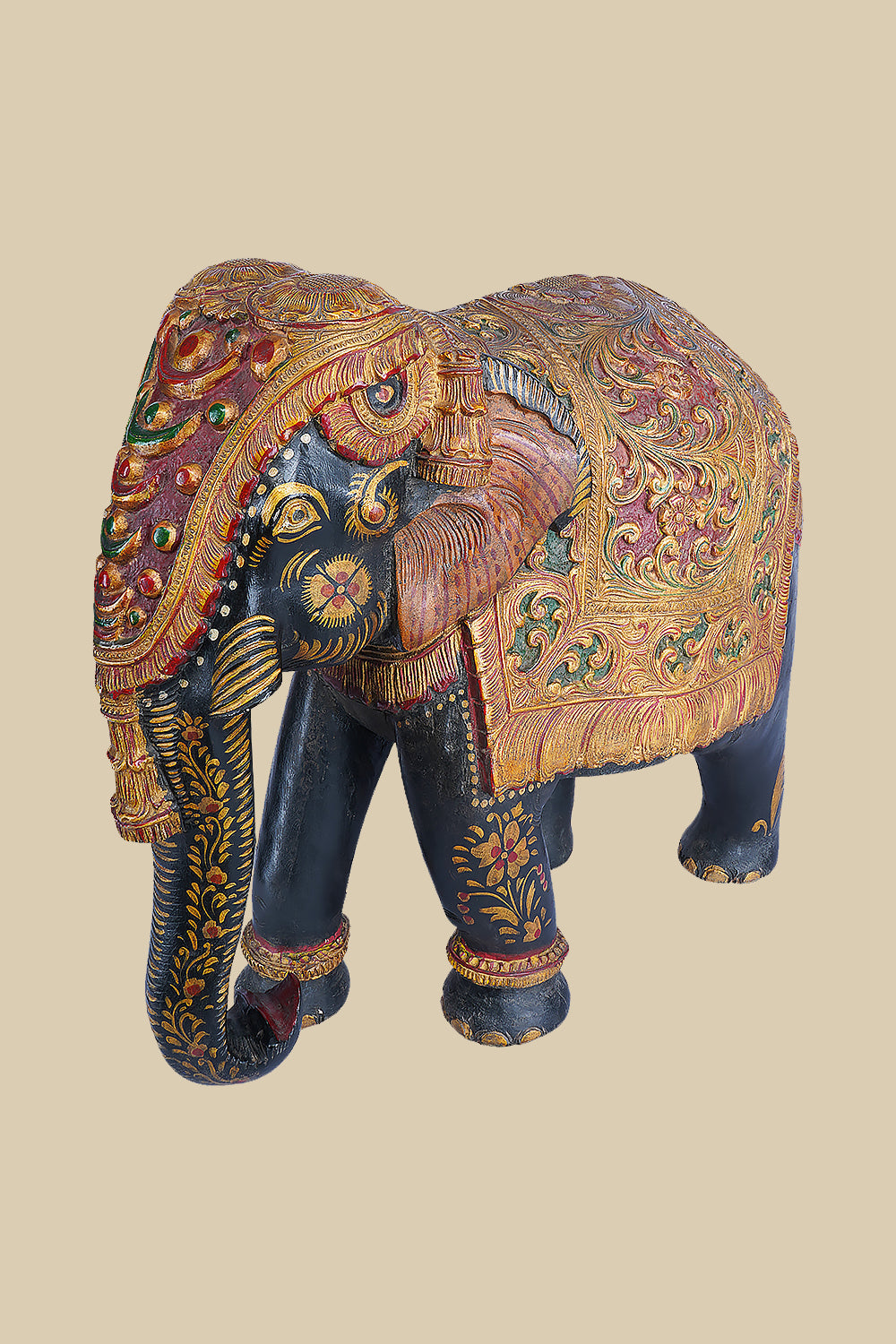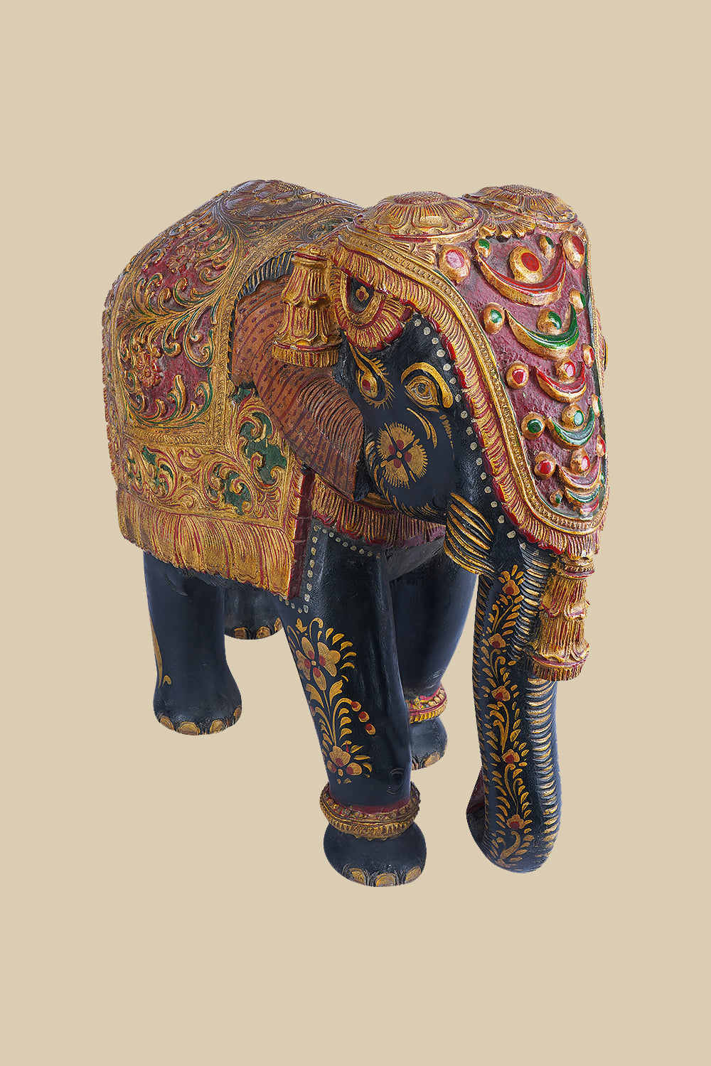 The Wooden Painted Elephant figurine (47 cm x 51 cm x 23 cm) is a vibrant celebration of Indian art and tradition. Hand-carved from premium wood and beautified with minute hand-painted motifs, this decorative statue brings to life the grandeur of royal processions and temple festivals.