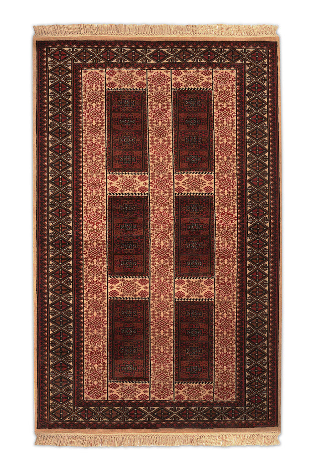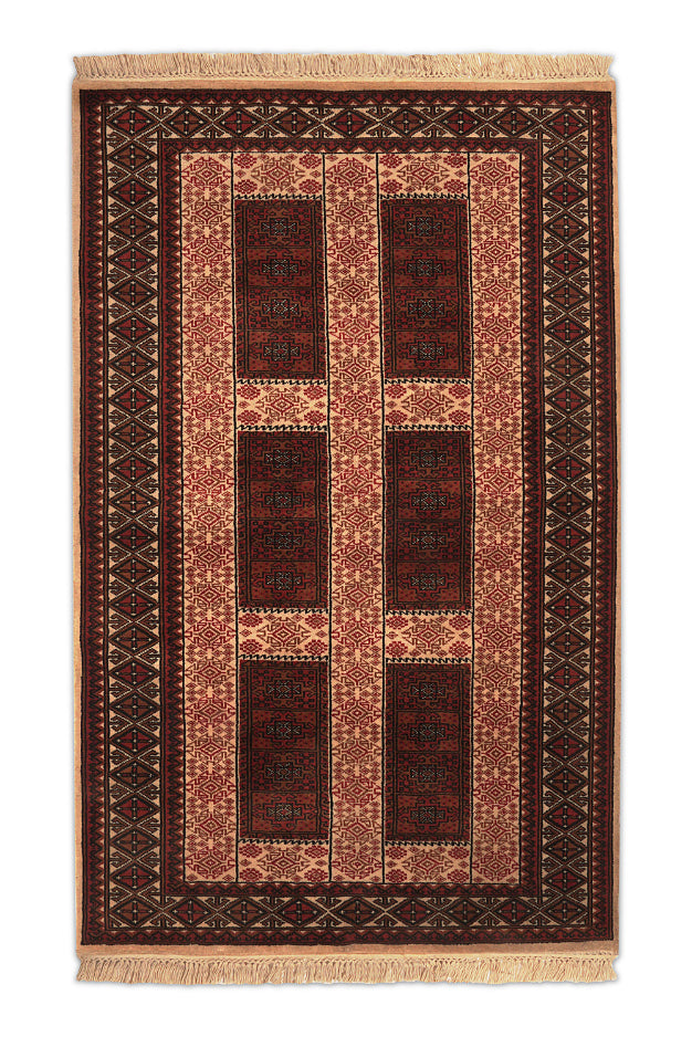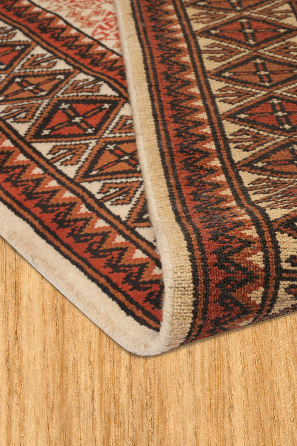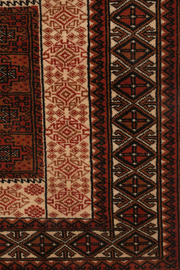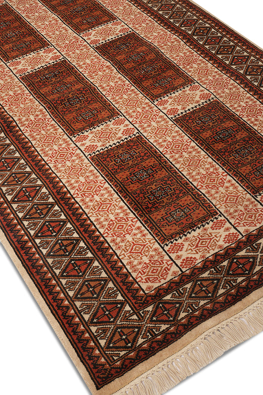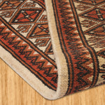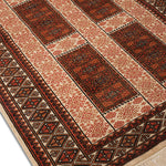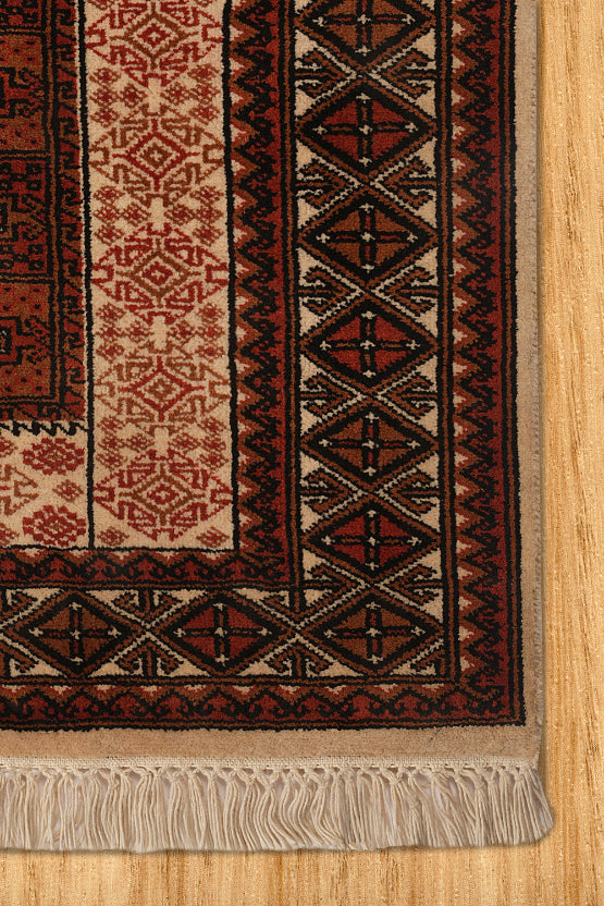 Embrace the rich heritage of tribal craftsmanship with the Gulzar rug, a distinctive piece from our Junoon Collection that honors ancient weaving techniques. This 4 x 6 ft hand-knotted wool rug, featuring a medium pile with a mild soft texture, showcases a pattern of geometric panels with diamond motifs in warm beige taupe, deep rust terracotta, and hints of faded copper. Its design draws from Central Asian and Persian tribal rugs, where diamond patterns symbolized protection, fertility, and community strength since the 18th century, often woven for nomadic tents and rituals. These motifs, carrying stories of resilience, influenced textile traditions across trade routes, blending cultural depth with timeless appeal. The cozy feel underfoot makes it perfect for living rooms or bedrooms seeking a rustic accent.