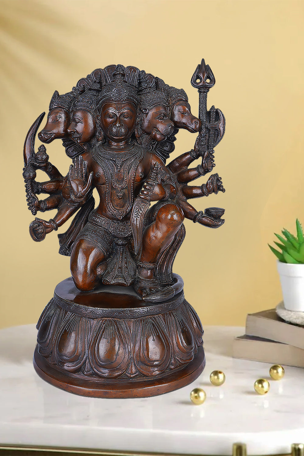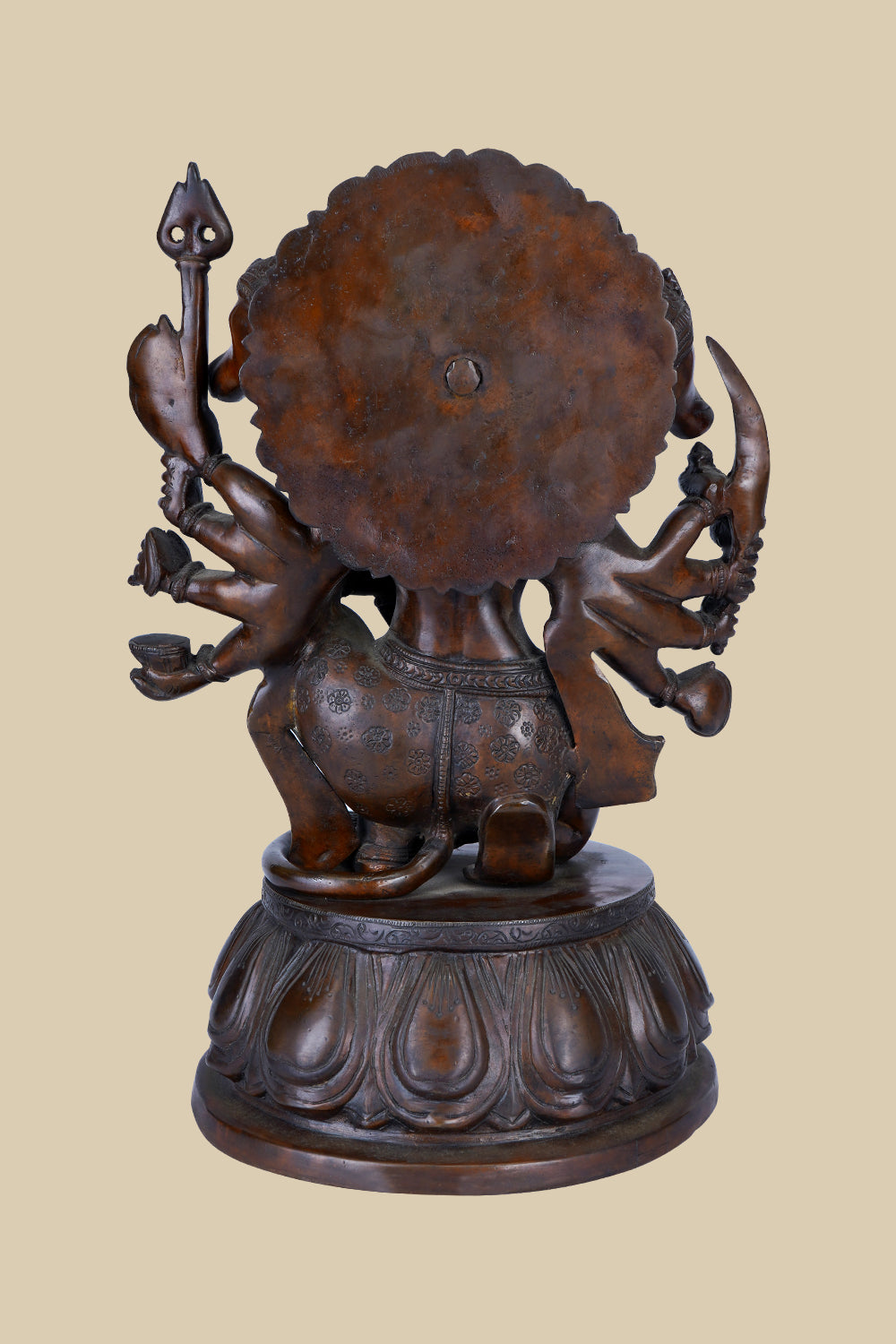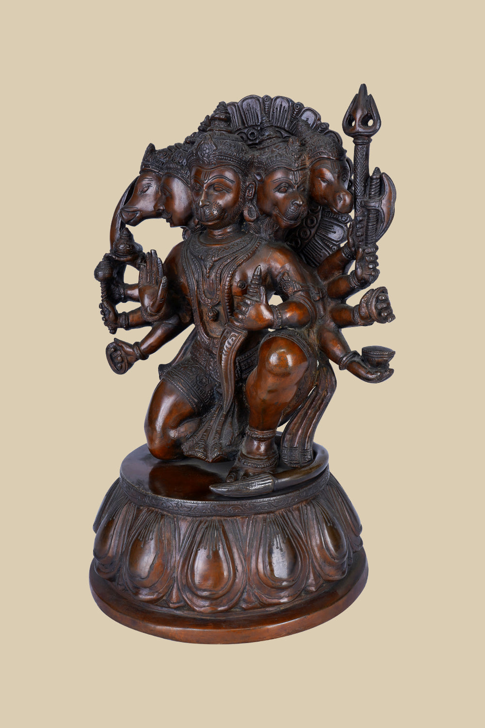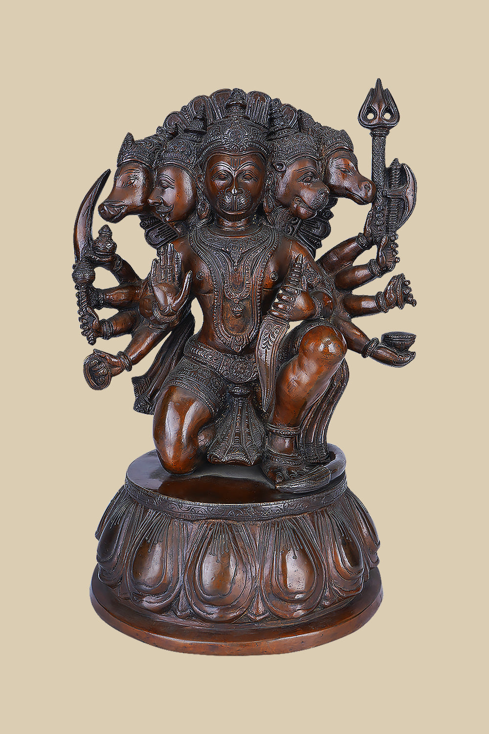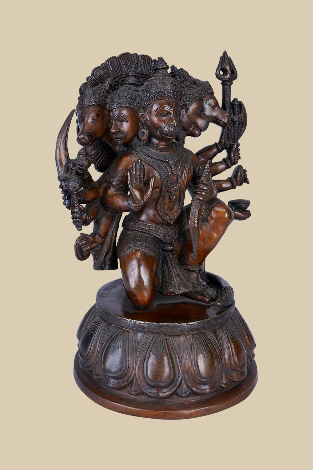 This 33 cm brass statue of Lord Hanuman captures the heroic spirit and devotion of one of Hinduism’s most revered deities. Known for his strength, loyalty, and courage, Hanuman is depicted here with his Vikath Rupa (Full Attack Form) muscular form and poised stance, exuding an aura of divine power. The fine brass detailing, from his broad chest to the expression of unwavering devotion on his face, showcases the craftsmanship and reverence with which this statue is made.