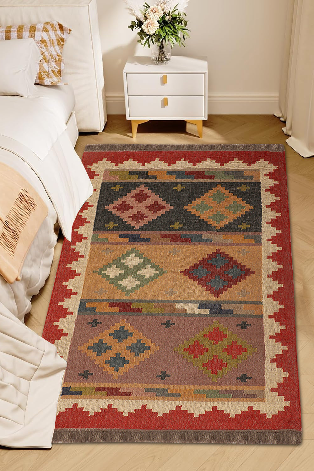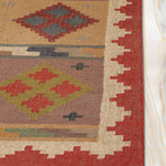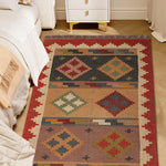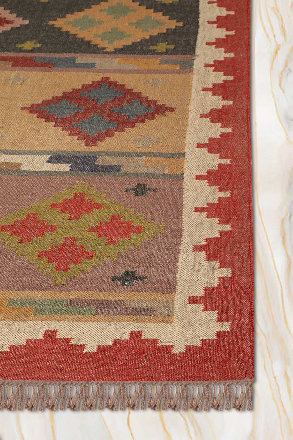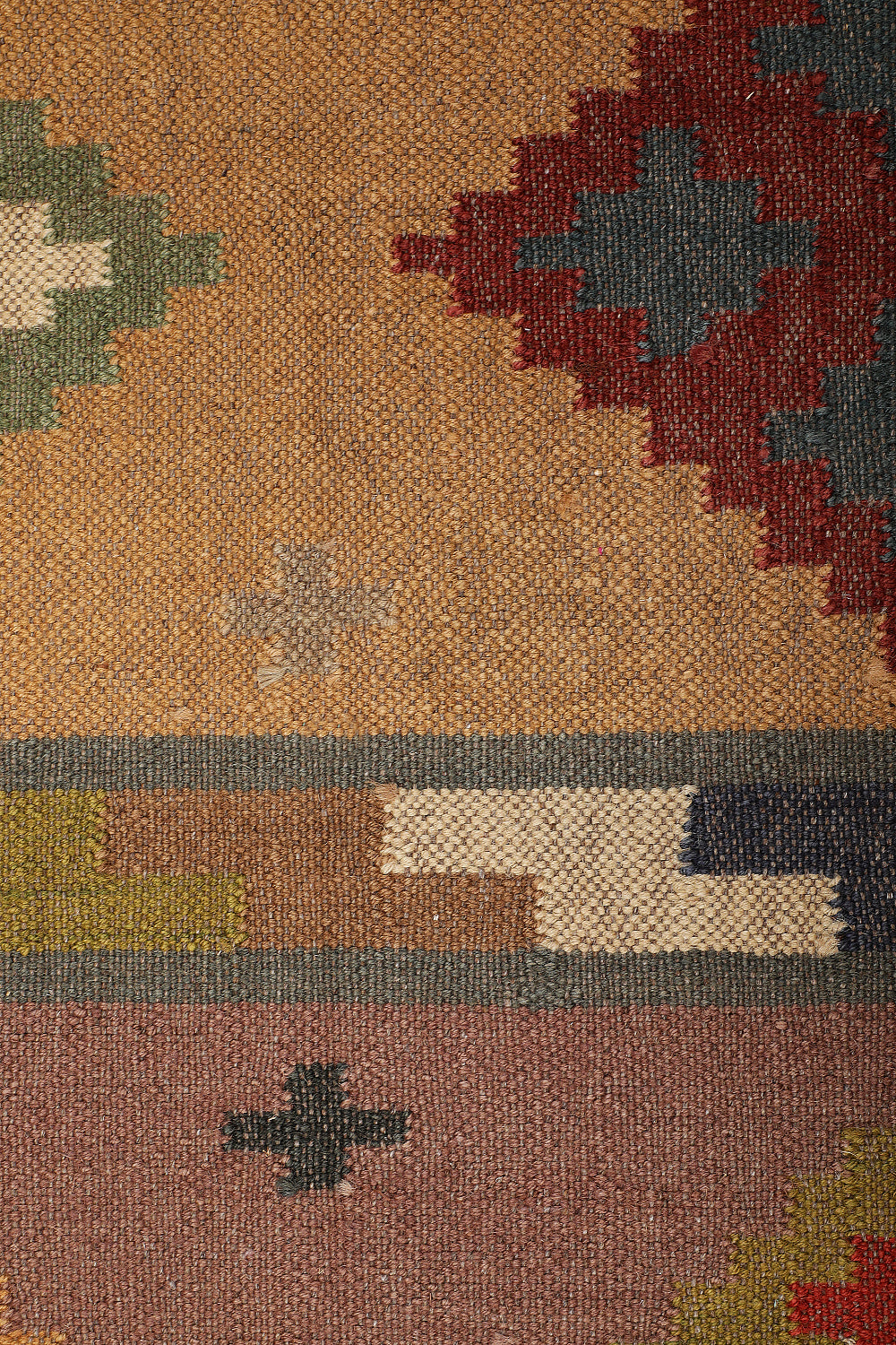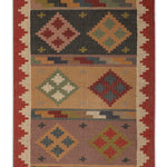 Enhance your home with this rectangular rug, where every weave tells a story of historical depth and modern style. The Kilim geometric design, rooted in nomadic heritage, complements both minimalist and eclectic interiors with its colorful patterns. Ideal for modern homes, it blends durability with a natural charm, creating a lively yet cozy focal point. Its earthy tones transform any room, infusing it with a sense of cultural legacy and understated elegance. Discover a rug that connects the past’s artistry with today’s living spaces.
