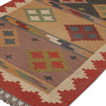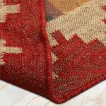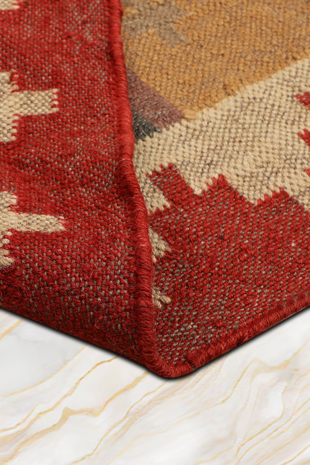 Add character to your space with the Javira rug, a vibrant handwoven piece from our Odyssey Collection that merges modern flair with rustic heritage. This 4 x 6 ft jute rug, featuring a low pile with a coarse texture, showcases geometric motifs in warm chestnut tone, soft beige dawn, and hints of deep taupe. Its design draws from nomadic weaving traditions, where geometric patterns symbolized protection and unity since ancient times, often crafted into flatweave Kilims to reflect tribal resilience. These motifs, embodying cultural narratives of strength and harmony, spread through trade routes, influencing textile arts with their bold simplicity. The sturdy texture makes it perfect for living rooms or bedrooms seeking a contemporary edge.
