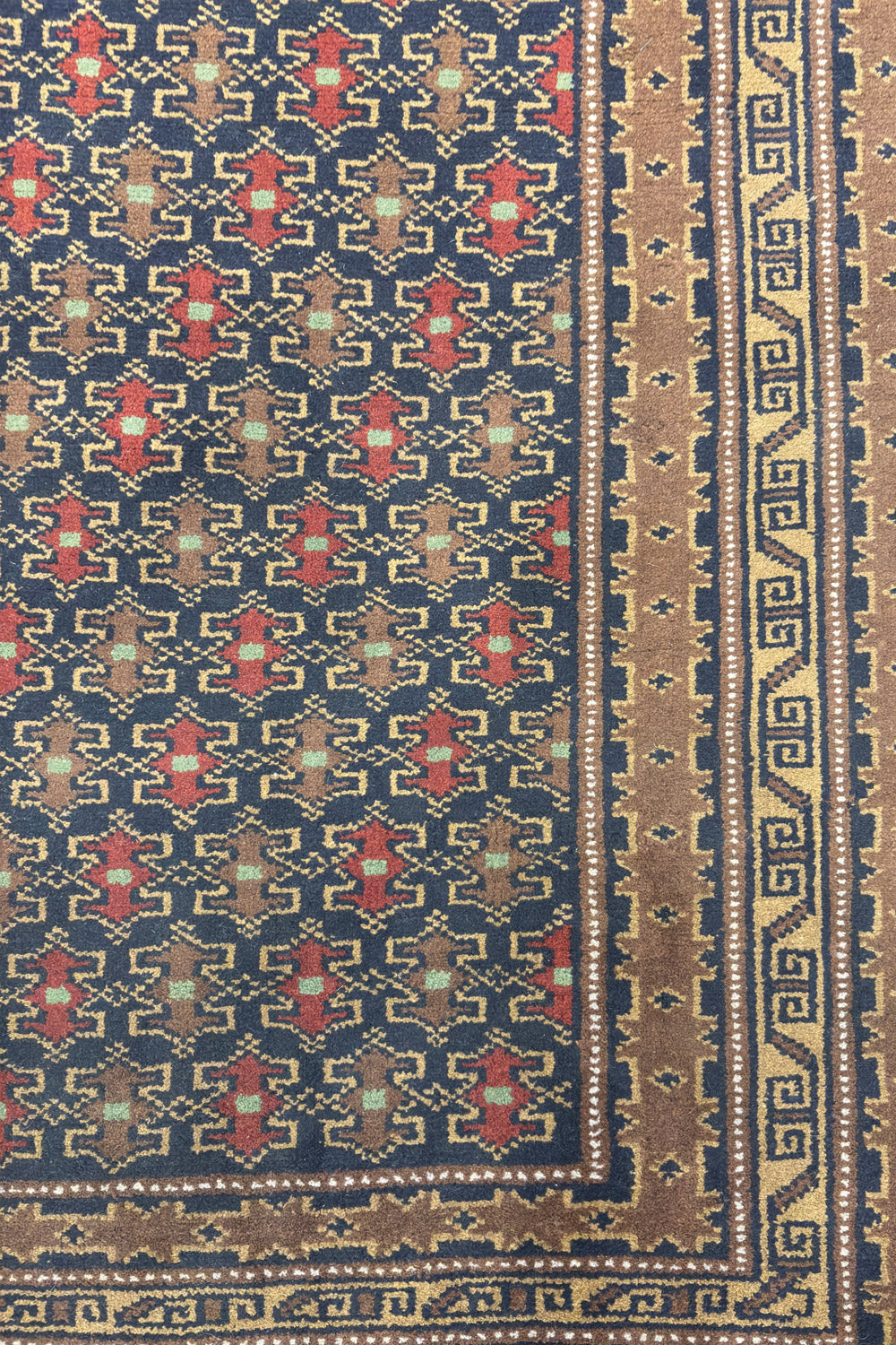 KR00284 Navy Blue/Brown Wool Hand Knotted Rug