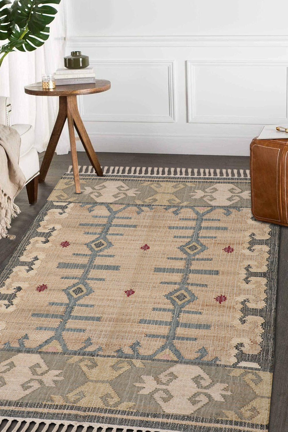 Enhance your space with this rectangular rug, where every thread weaves a story of historical depth and modern simplicity. The kilim geometric design, inspired by ancient Persian symbolism, complements both minimalist and eclectic interiors with its organic charm. Ideal for modern homes, it blends resilience with a natural textured feel, creating a subtle yet grounding focal point. Its neutral tones transform any room, infusing it with a sense of timeless beauty and cultural resonance. Discover a rug that connects the past’s artistry with today’s living spaces.