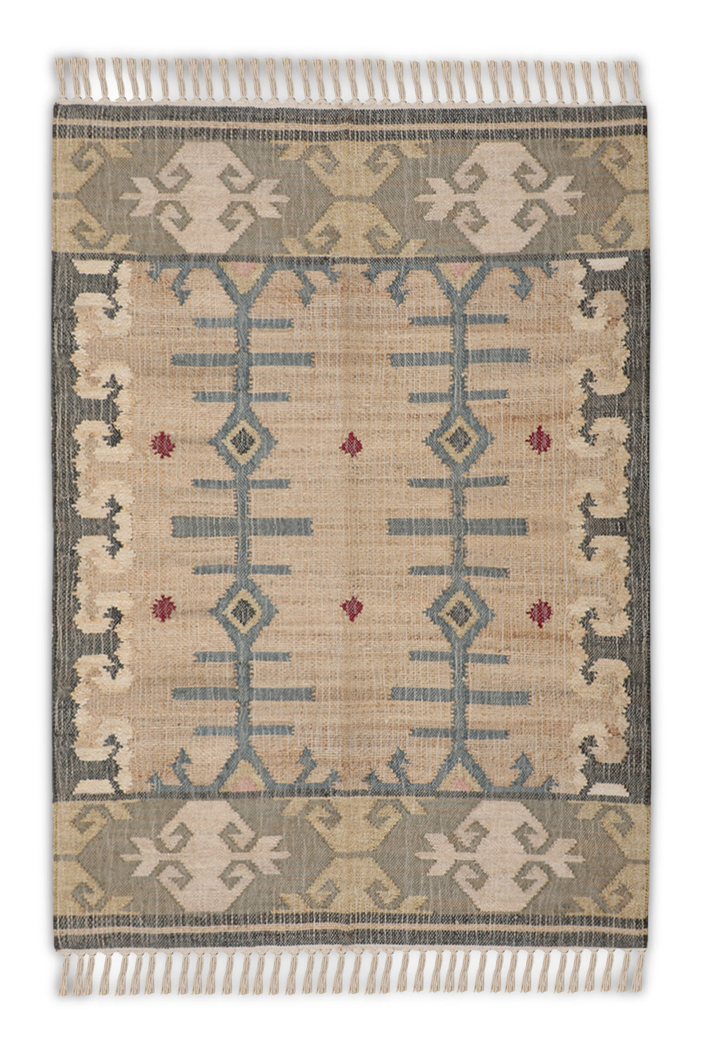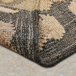 Add an earthy touch to your home with the Kianoush rug, a skillfully handwoven piece from our Odyssey Collection that blends modern design with cultural heritage. This 4 x 6 ft jute kilim, featuring a low pile with a coarse texture, showcases a geometric diamond lattice with subtle stripe accents in warm beige sand, rich chestnut brown, and hints of soft mocha. Its design draws from Persian and Central Asian traditions, where geometric patterns like diamond lattices symbolized protection and unity since the 17th century, often woven into kilims for ceremonial use and later reimagined with a modern aesthetic. These motifs, reflecting cultural narratives of community, influenced textile arts across trade routes, merging tradition with a contemporary, earthy vibe. The durable weave makes it perfect for living rooms or bedrooms seeking a rustic accent.