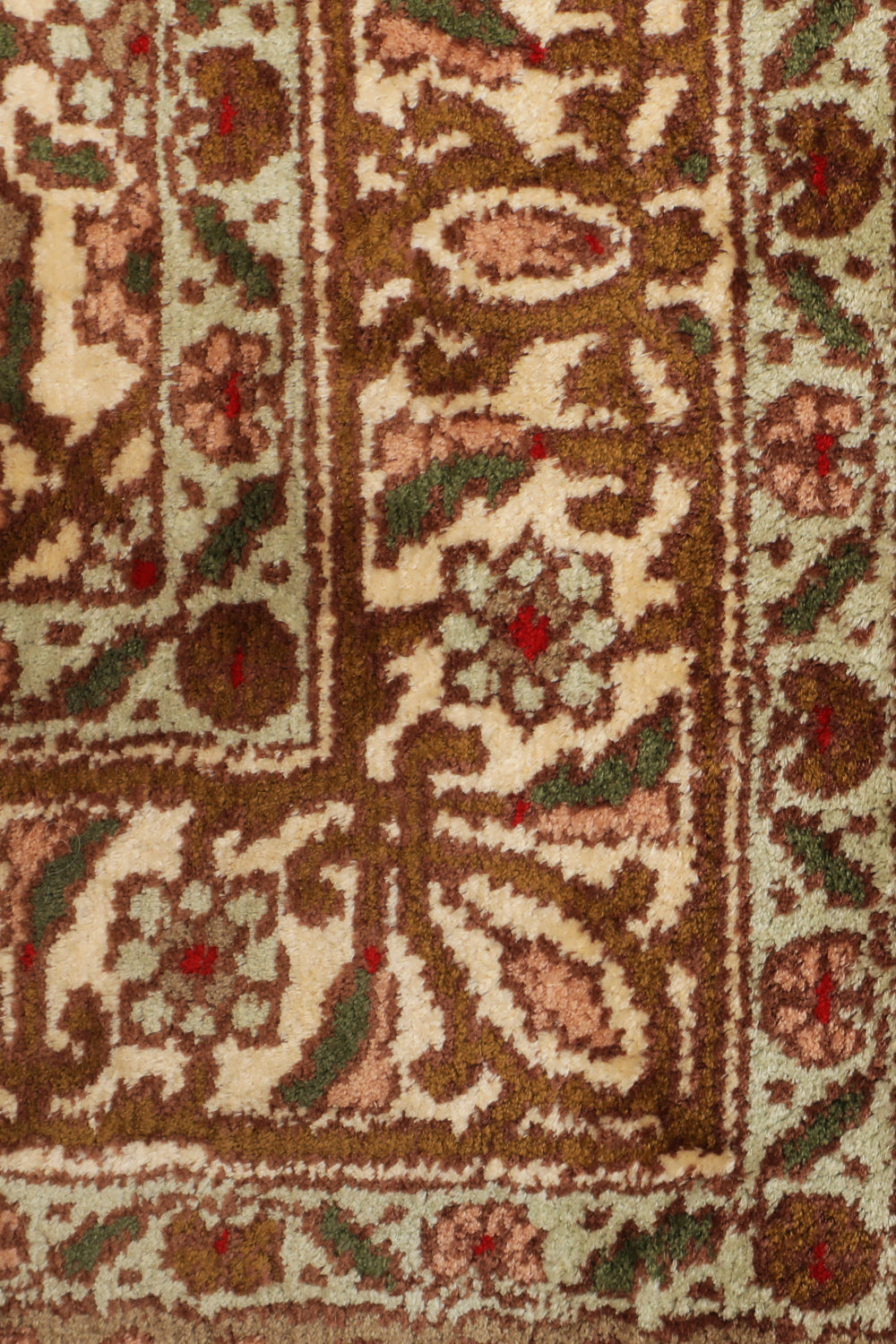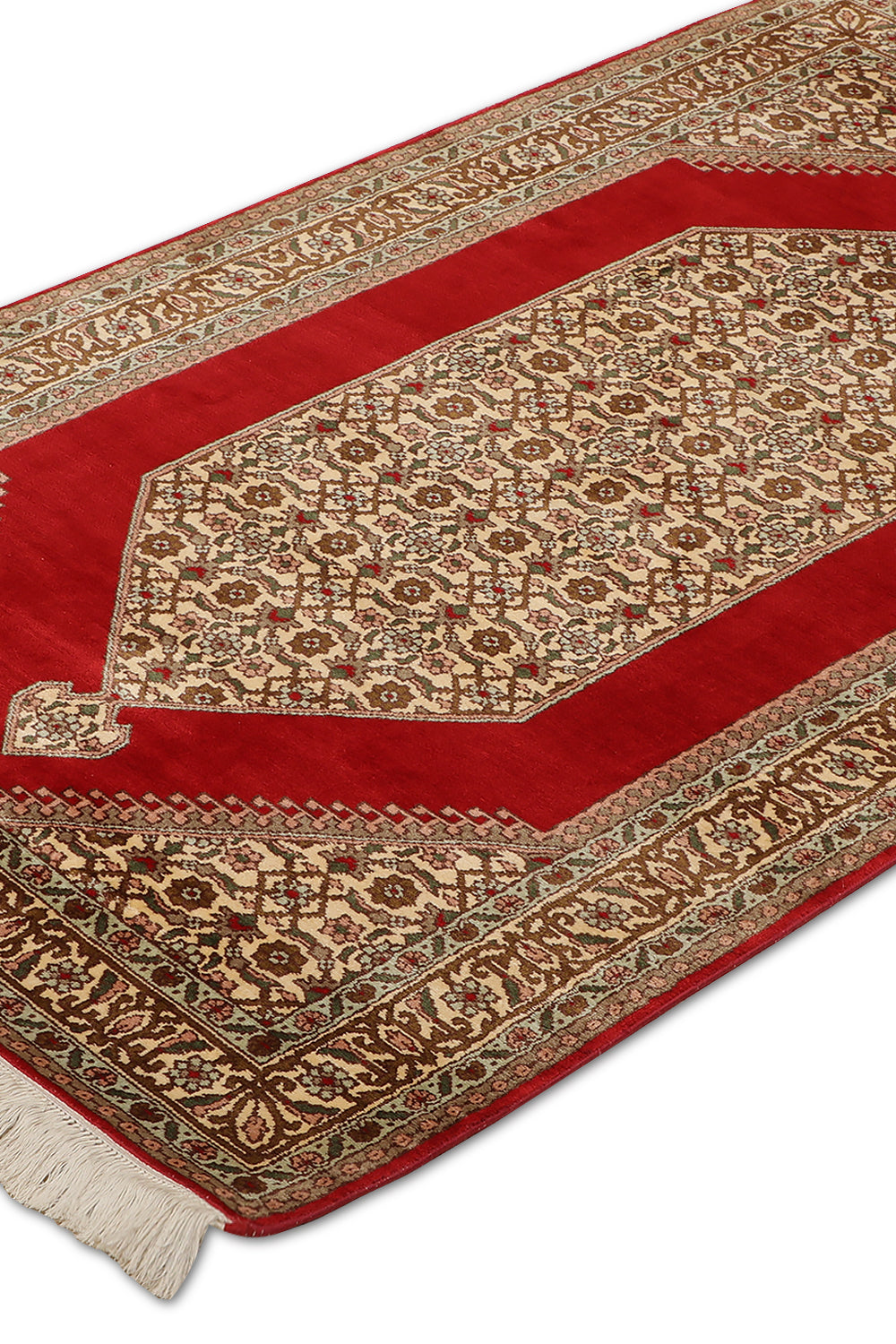 The soft feel and luminous sheen of the silk elevate its appeal, making it an ideal addition to a living room or bedroom. Each knot tells a story of dedication and craftsmanship, celebrating the enduring legacy of Indian traditional carpets while honoring the spirit of Shiraz’s tribal designs.