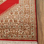 This intricate Shiraz design is a vibrant ode to the rich cultural tapestry of Persian tribal artistry. This hand-knotted silk rug, crafted in a striking palette of bright red and cream, is a masterpiece that instantly enlivens any space. Its compact 3x5 size makes it perfect for accentuating cozy corners or adding a splash of character to intimate settings.