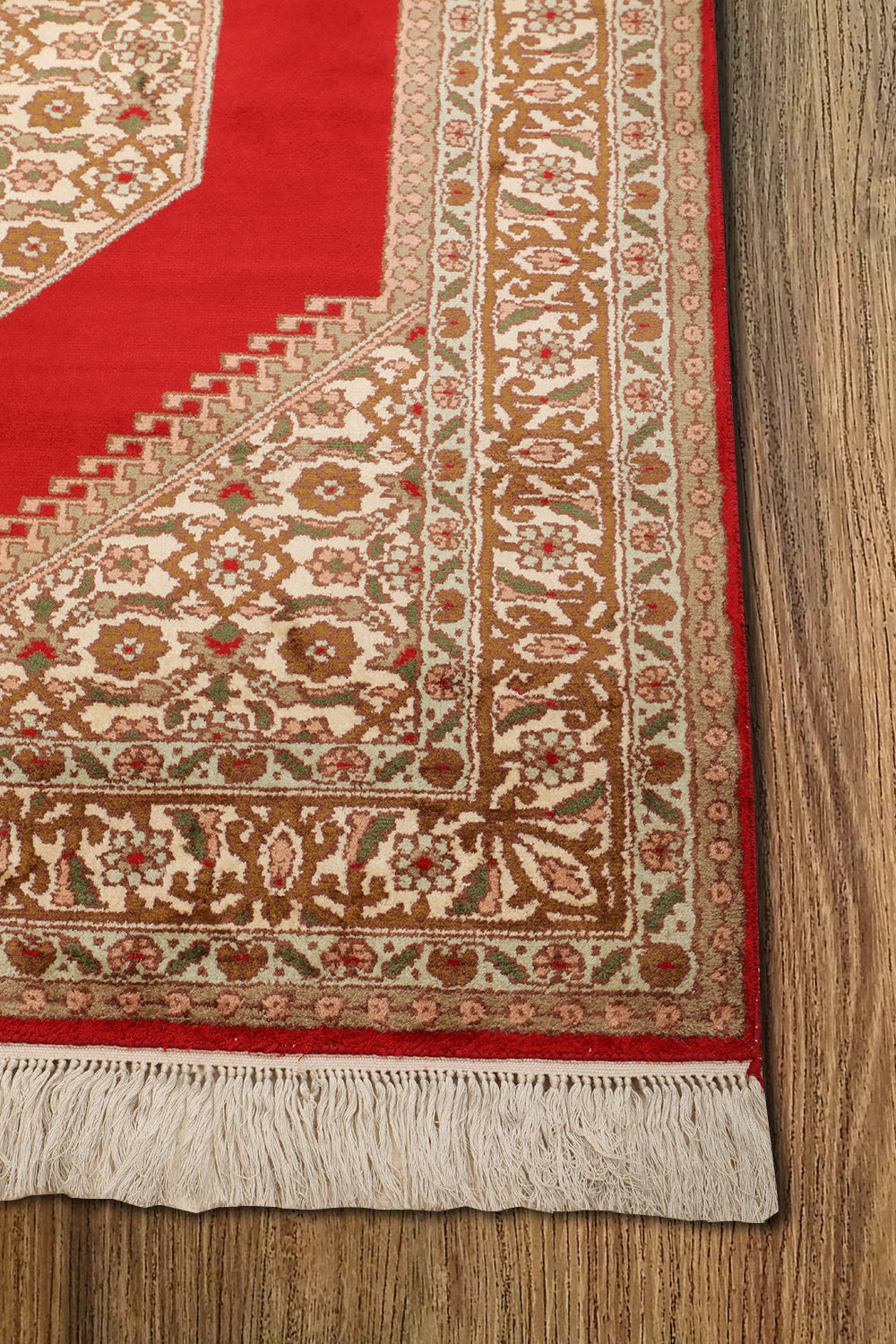 Lalish - Hand Knotted Silk Rug In Ribbon Red/Ivory