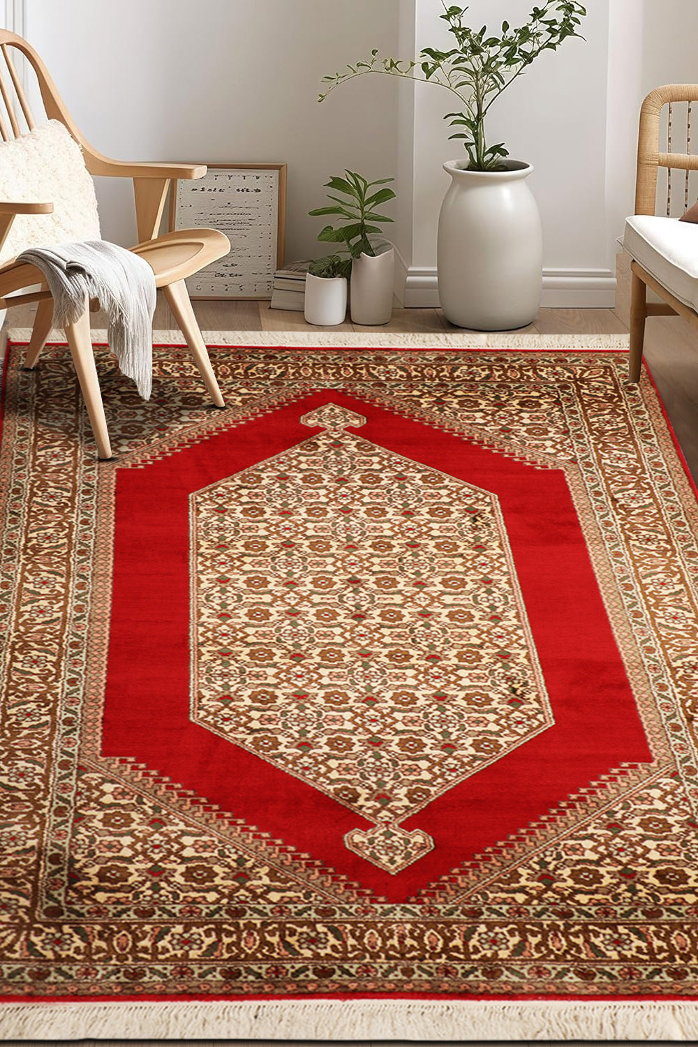 KR00158 Ribbon Red/Ivory Hand Knotted Rug