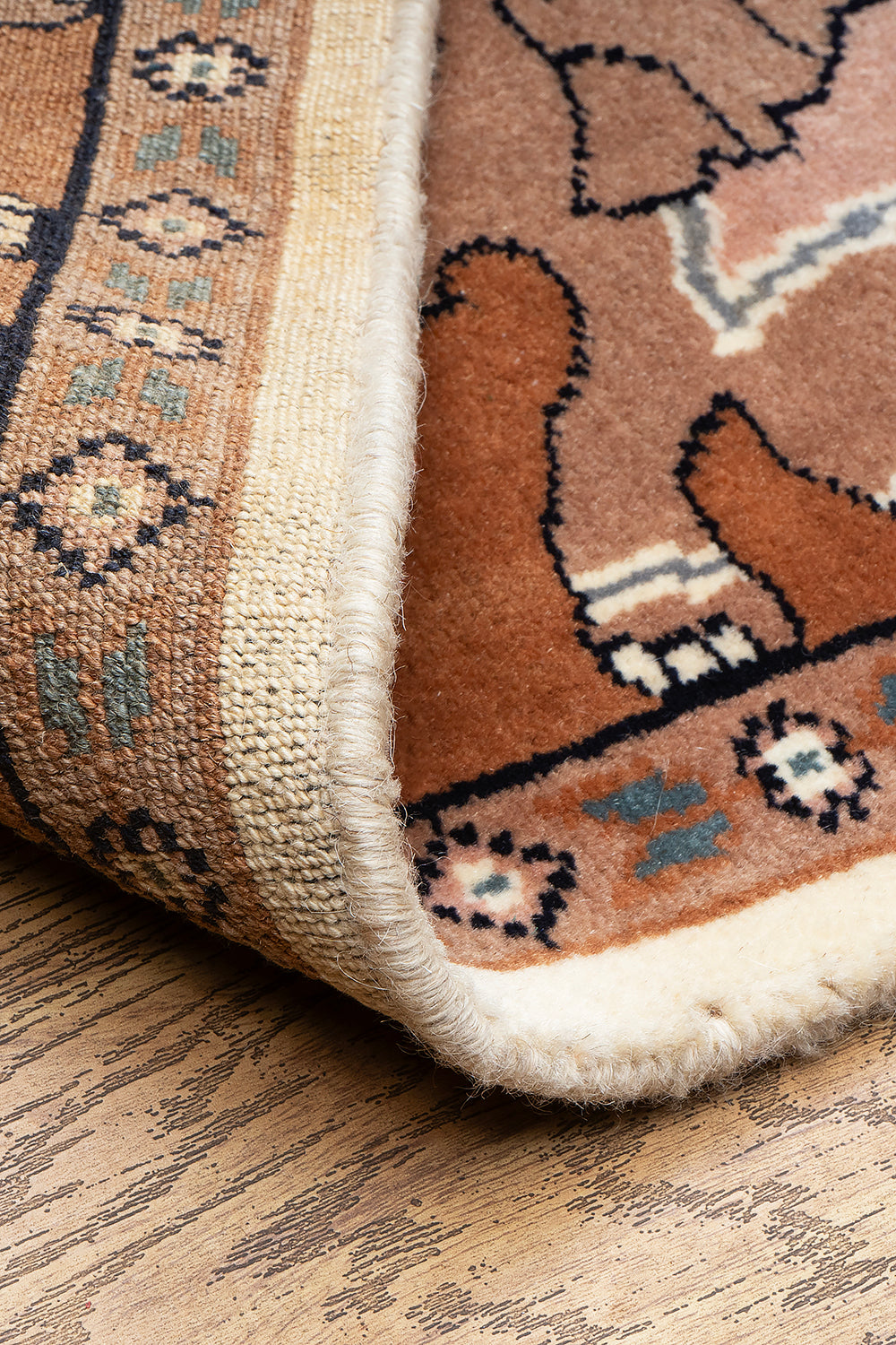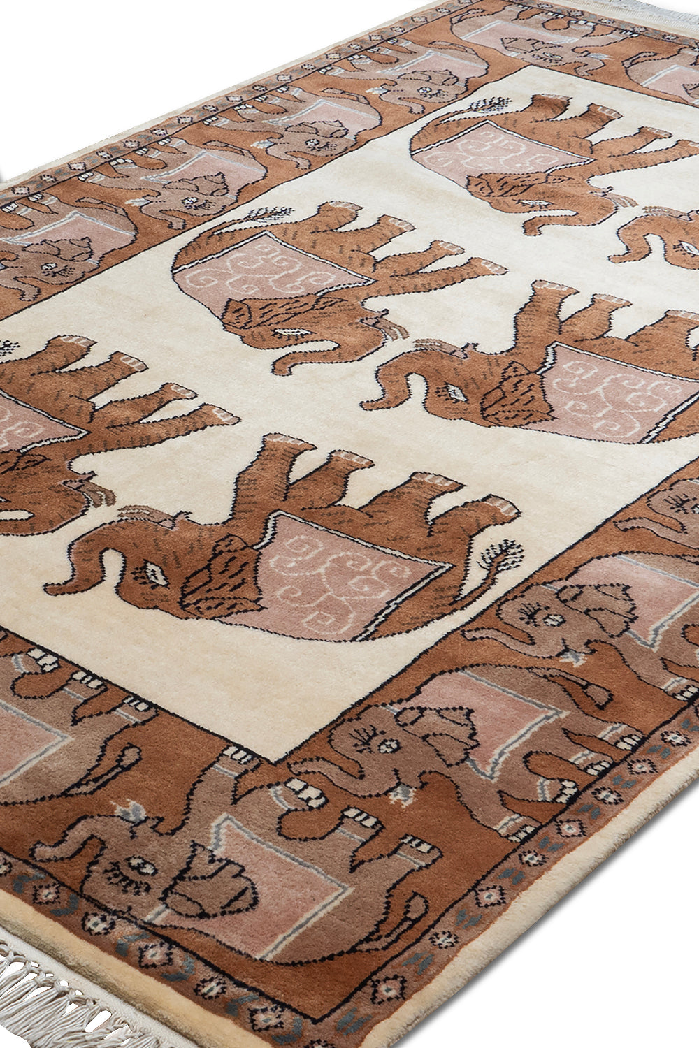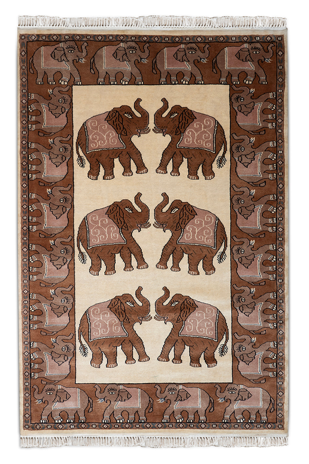 KR00109 Brown/Cream Hand Knotted Rug