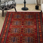 Enhance your home with this rectangular rug, where every knot weaves a story of historical depth and modern warmth. The tribal geometric design, rooted in ancient Persian symbolism, complements both traditional and contemporary interiors with its striking patterns. Perfect for modern homes, it blends durability with a tactile aesthetic, creating a vibrant yet cozy focal point. Its rich tones transform any room, infusing it with a sense of cultural richness and enduring strength. Discover a rug that connects the past’s craftsmanship with today’s living spaces.