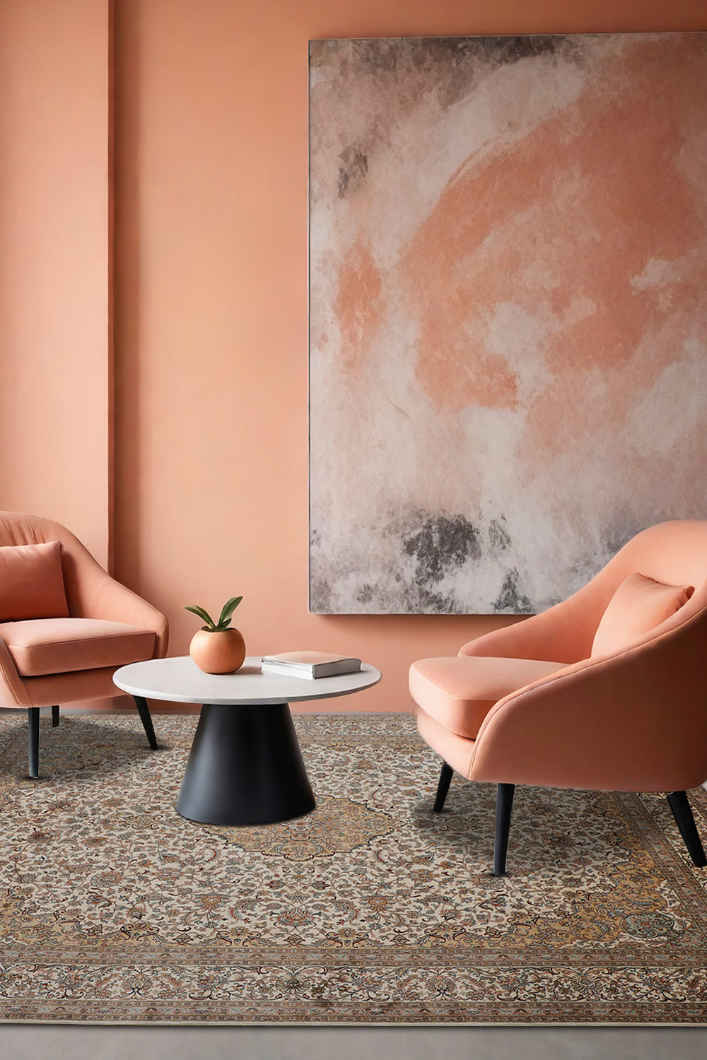 The creation of our rugs is a meticulous journey that combines age-old traditions with contemporary design, ensuring each piece is a unique work of art.