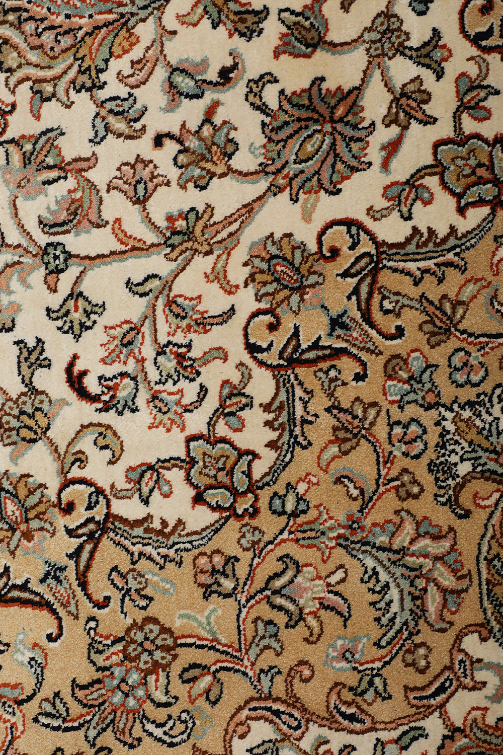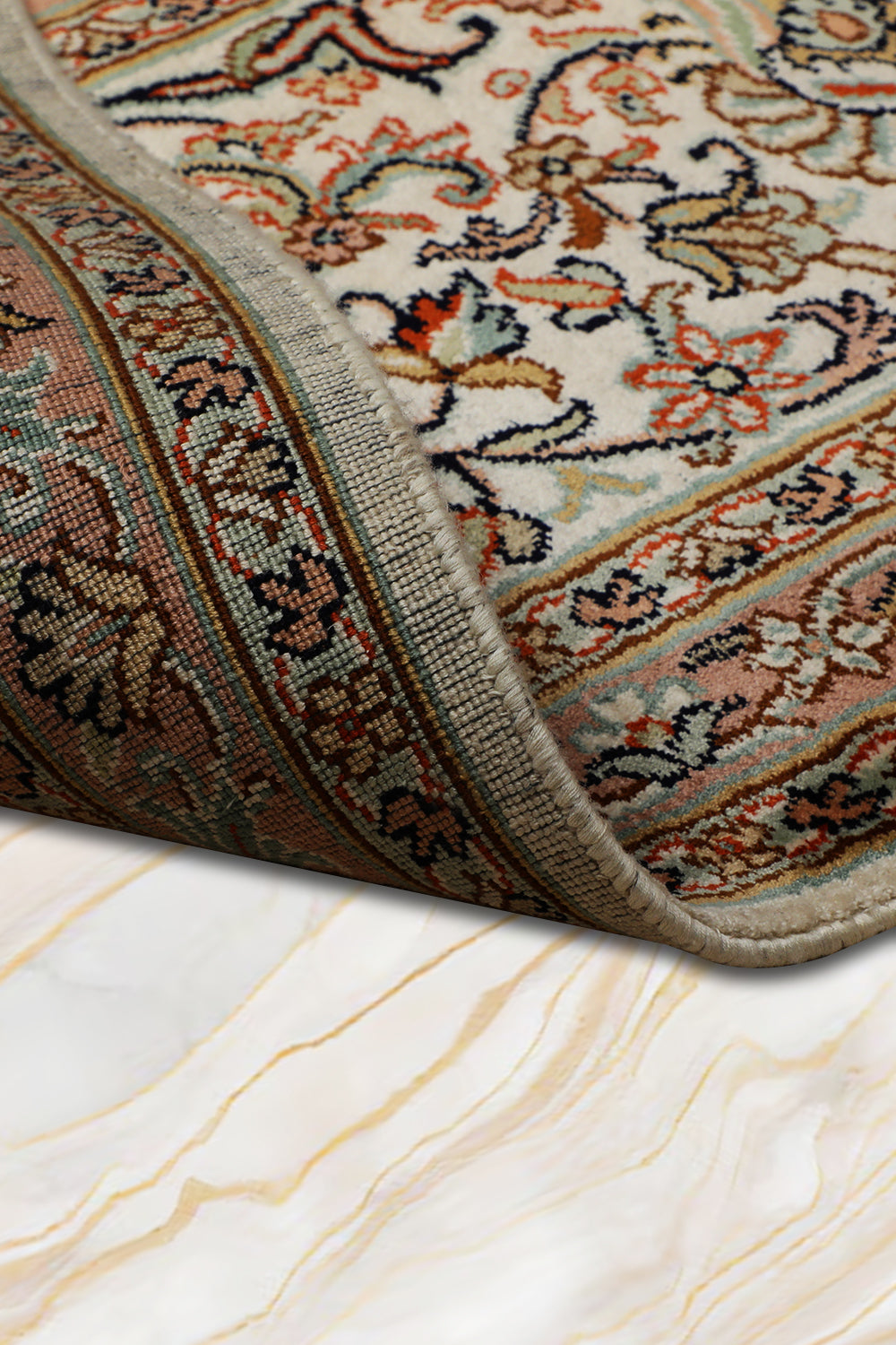 Enhance your home with this rectangular rug, where every knot weaves a story of historical depth and modern allure. The Oriental medallion design, rooted in ancient Persian symbolism, complements both classic and contemporary interiors with its detailed craftsmanship. Perfect for modern homes, it blends durability with a silky aesthetic, creating an elegant yet inviting focal point. Its light tones transform any room, infusing it with a sense of cultural richness and refined sophistication. Discover a rug that bridges the past’s artistry with today’s living environments.