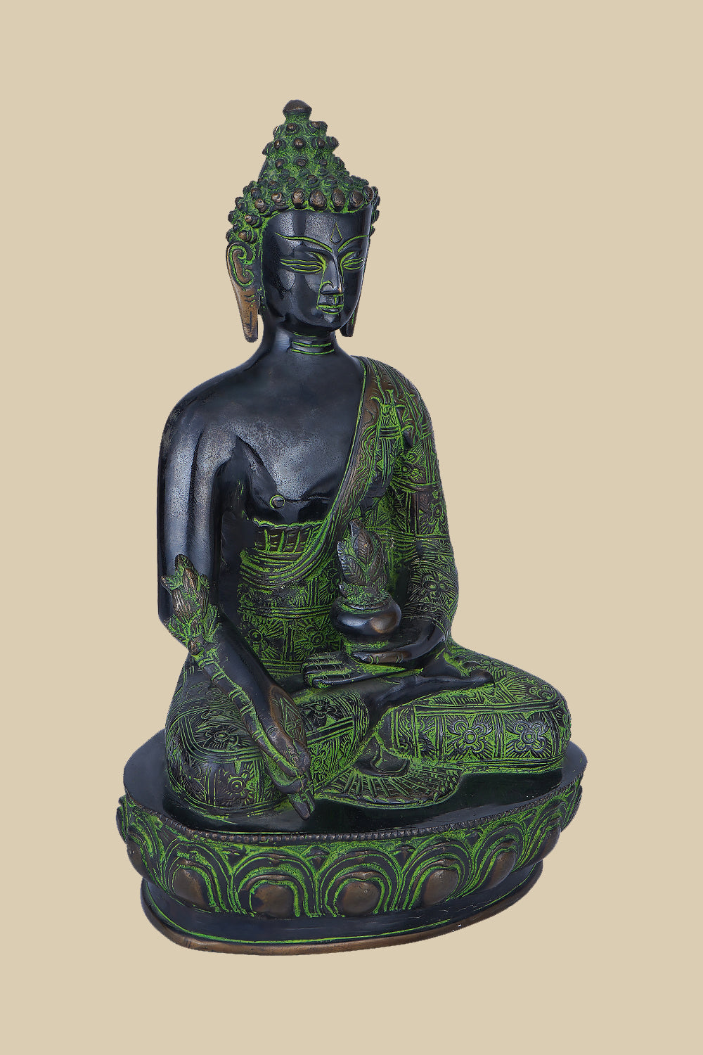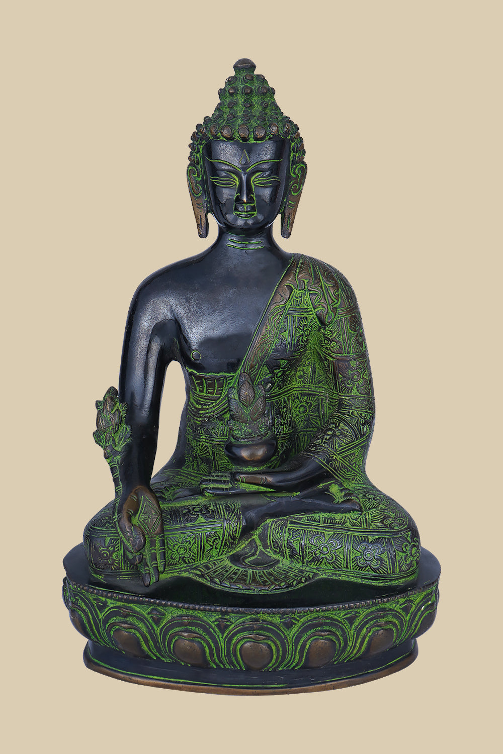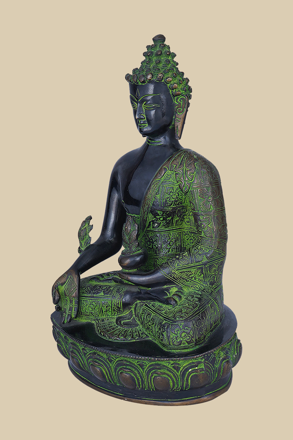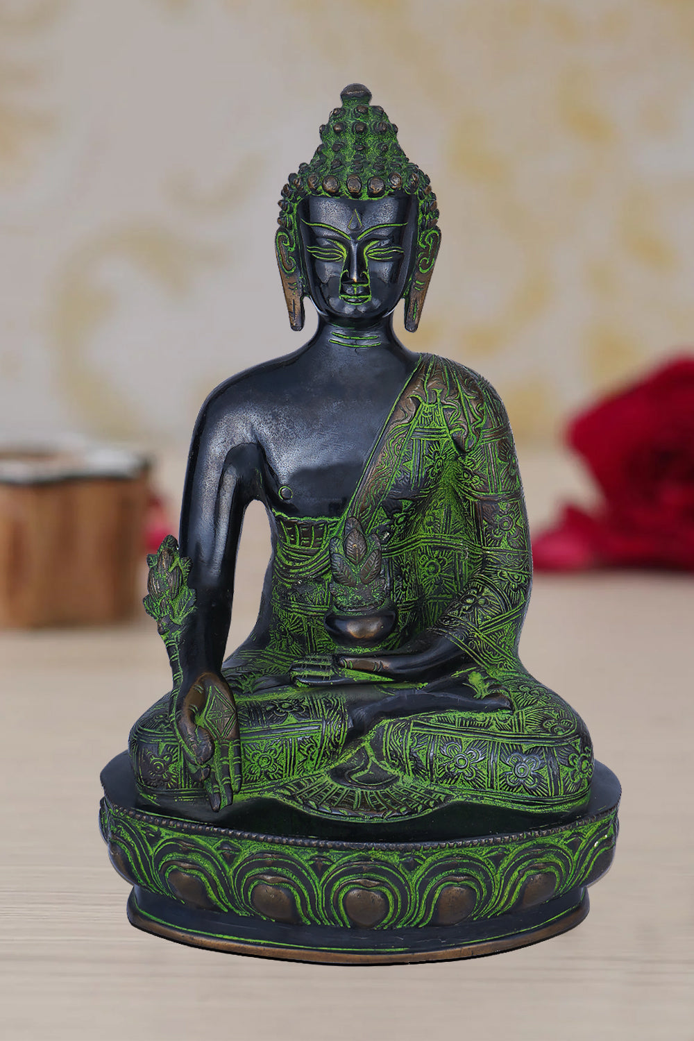 The statue’s brass material offers durability while also adding a rich visual texture that complements its symbolic value. It is a statement piece that speaks to the heart, inviting peace and mindfulness into your space.