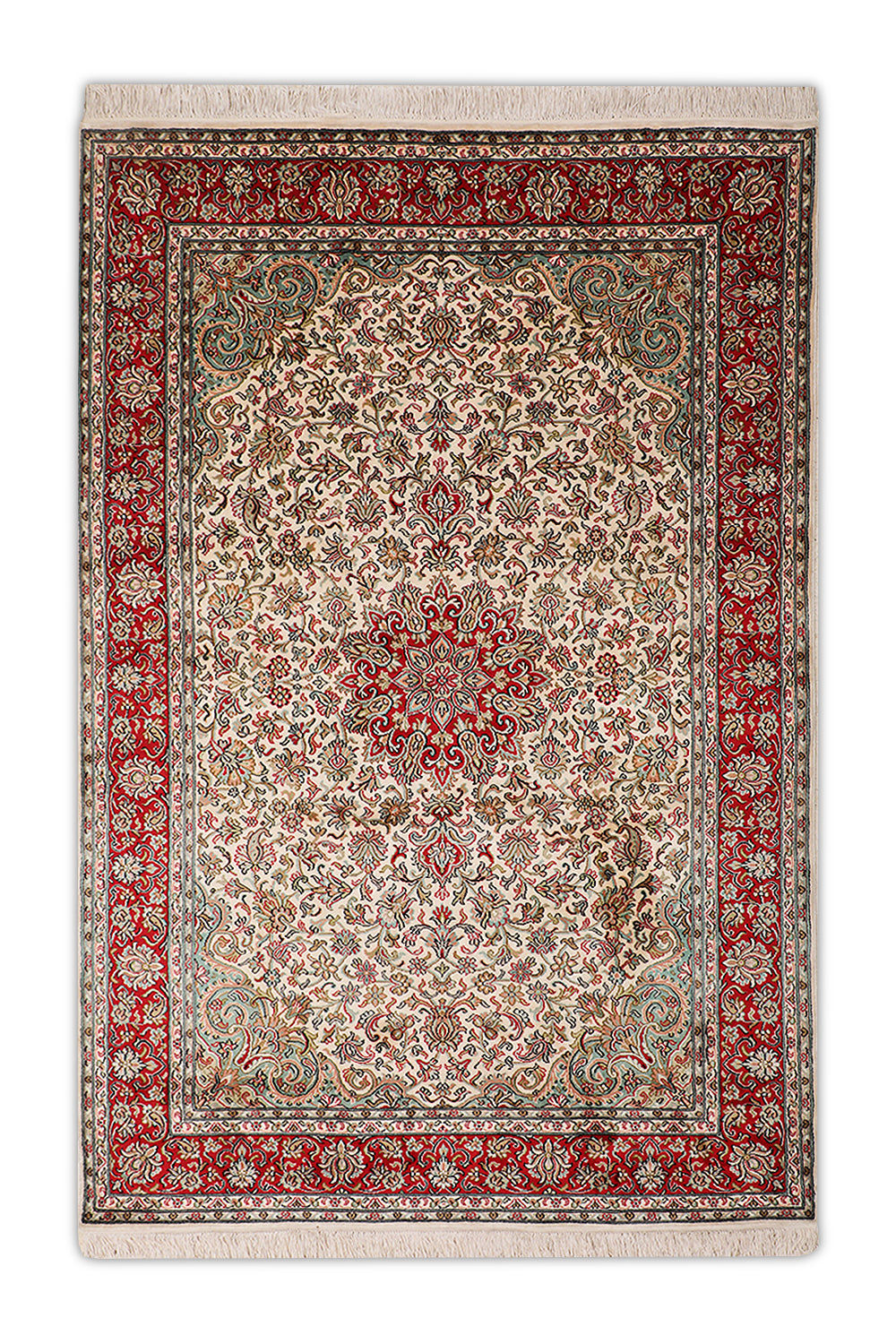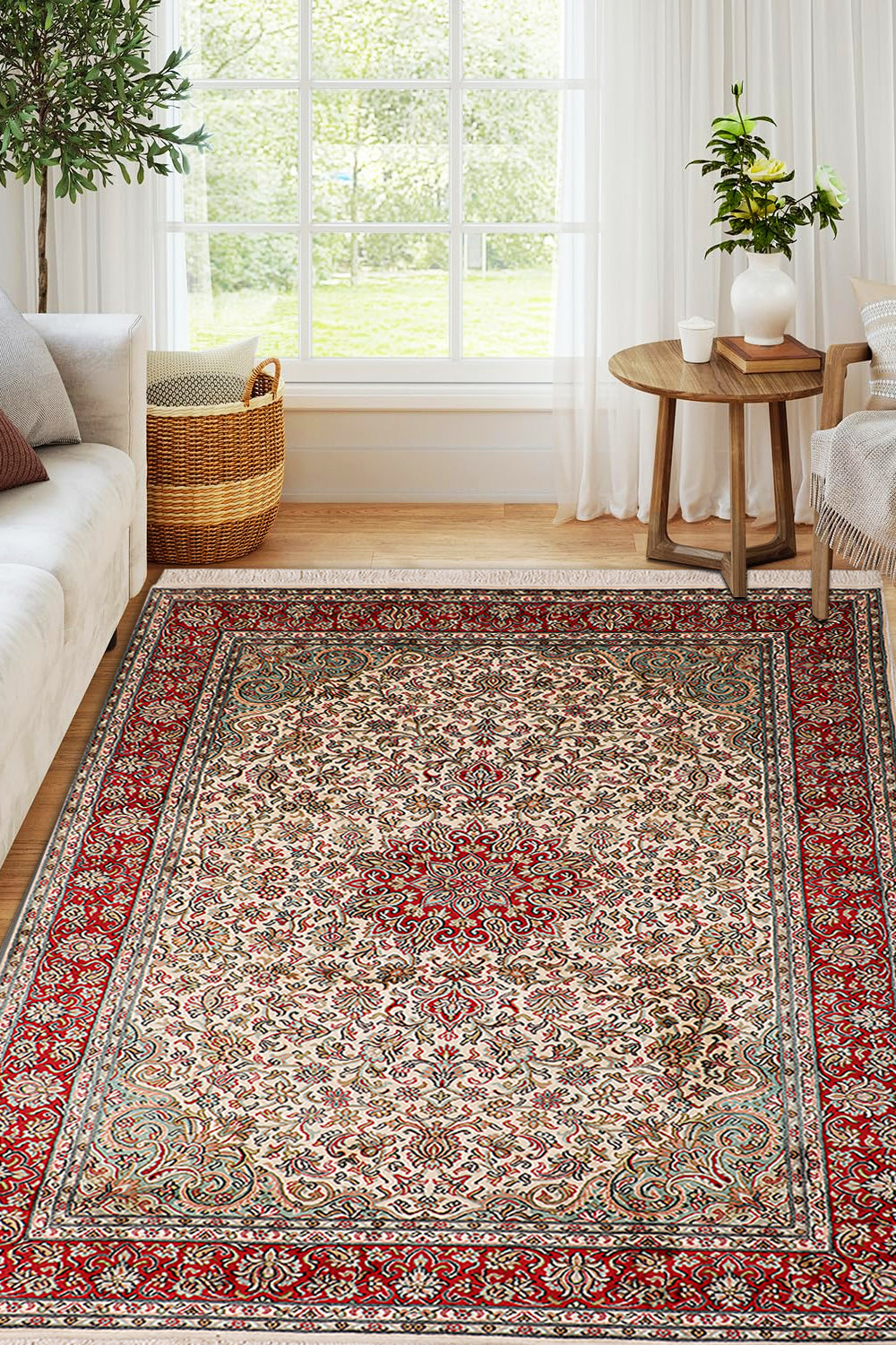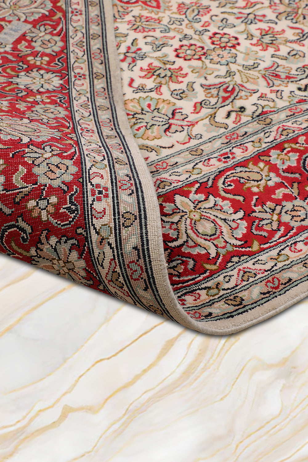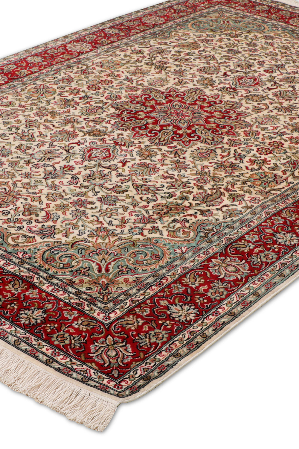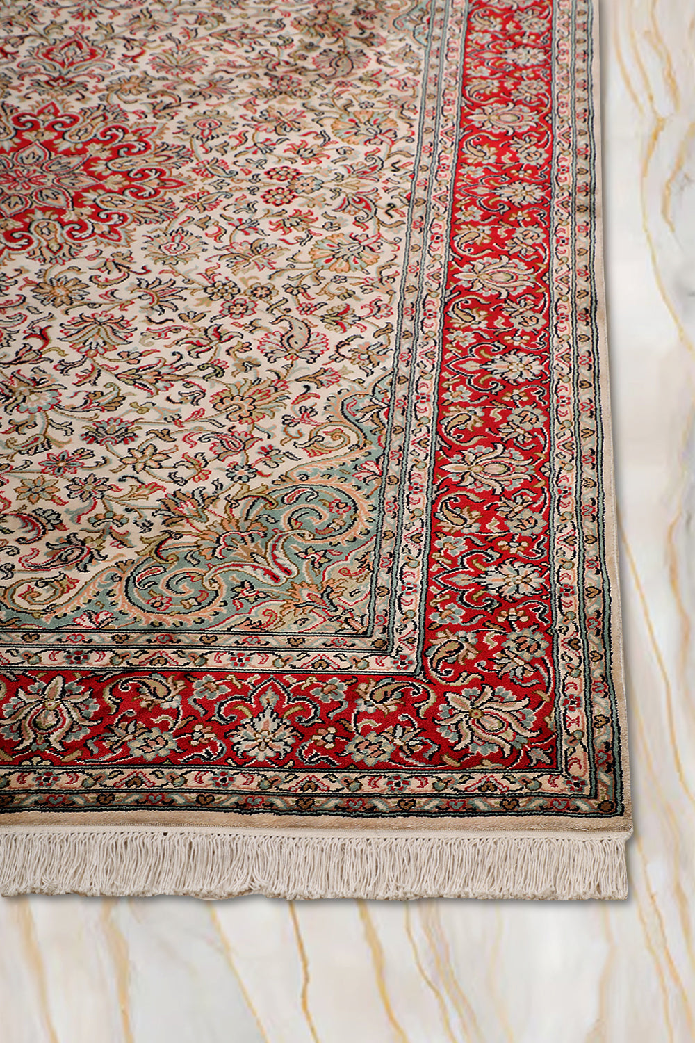 Narges - Hand Knotted Silk Rug In Cream/Red