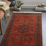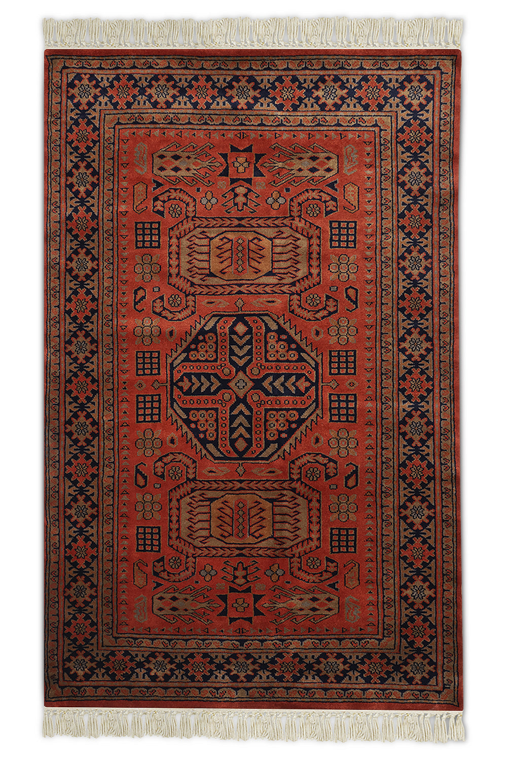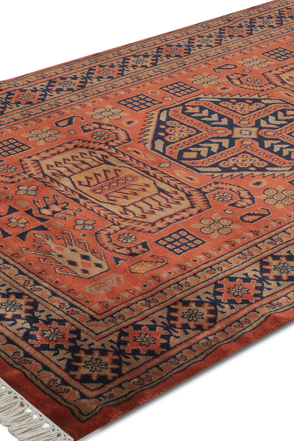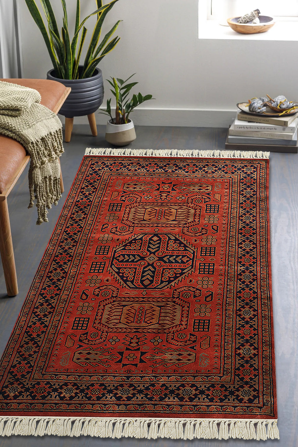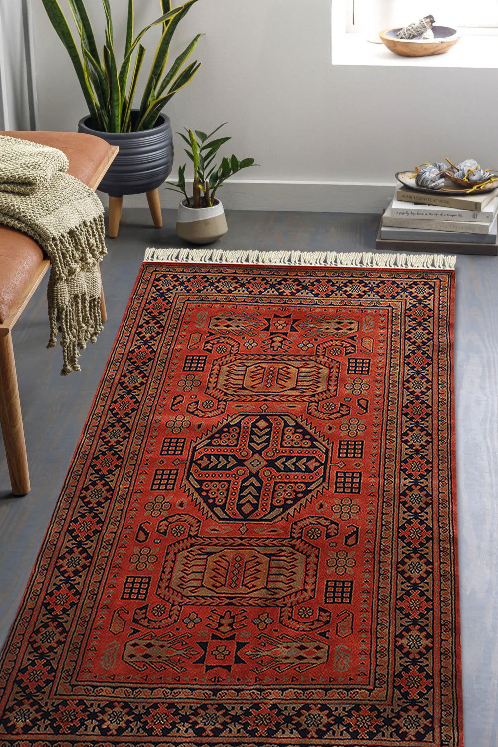 KR00058 Rust Orange /Black Hand Knotted Rug