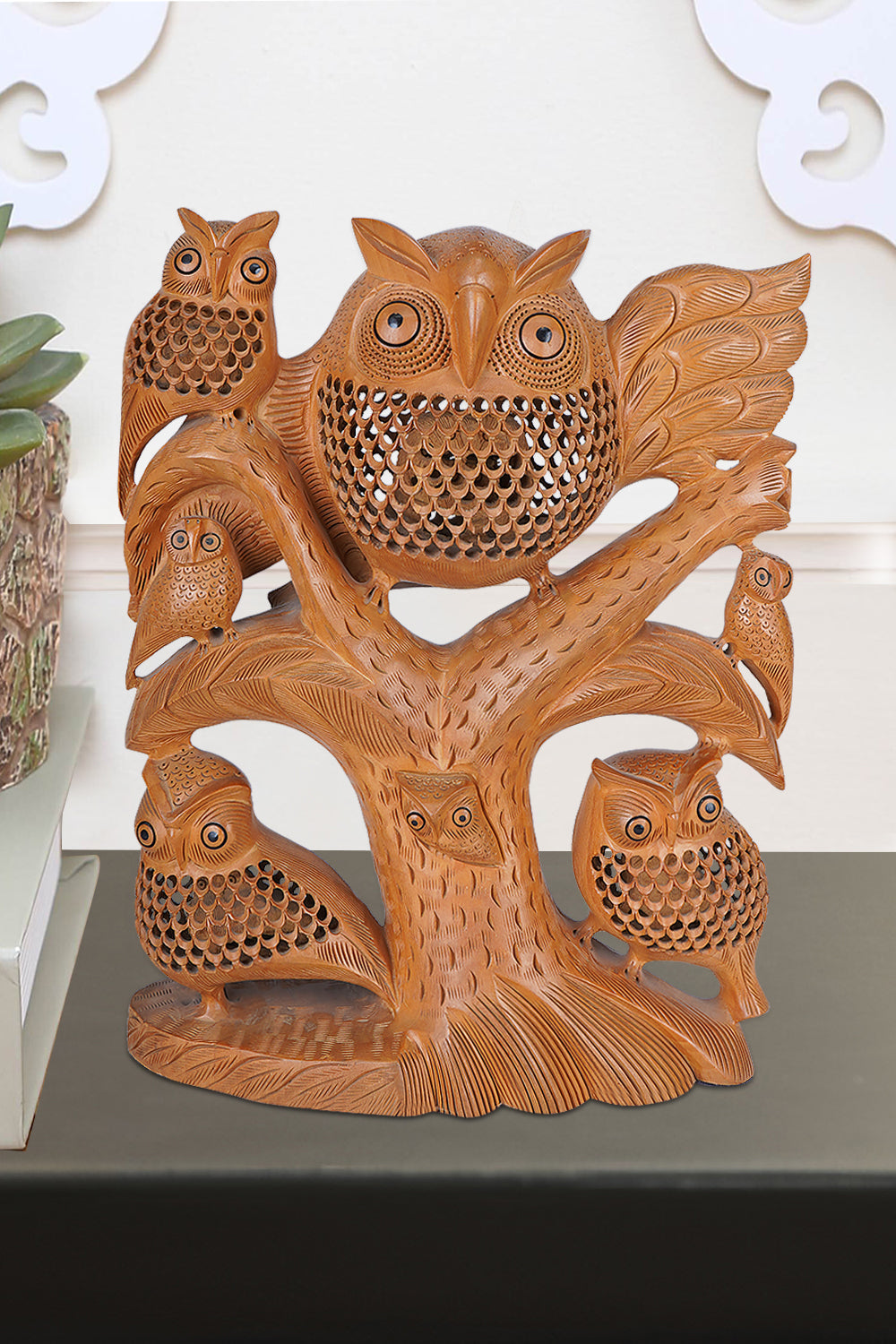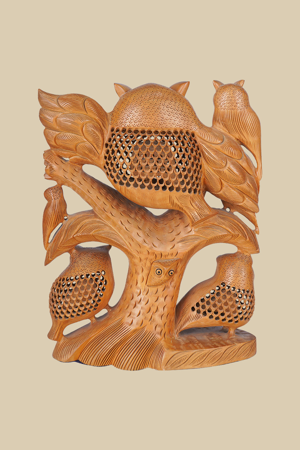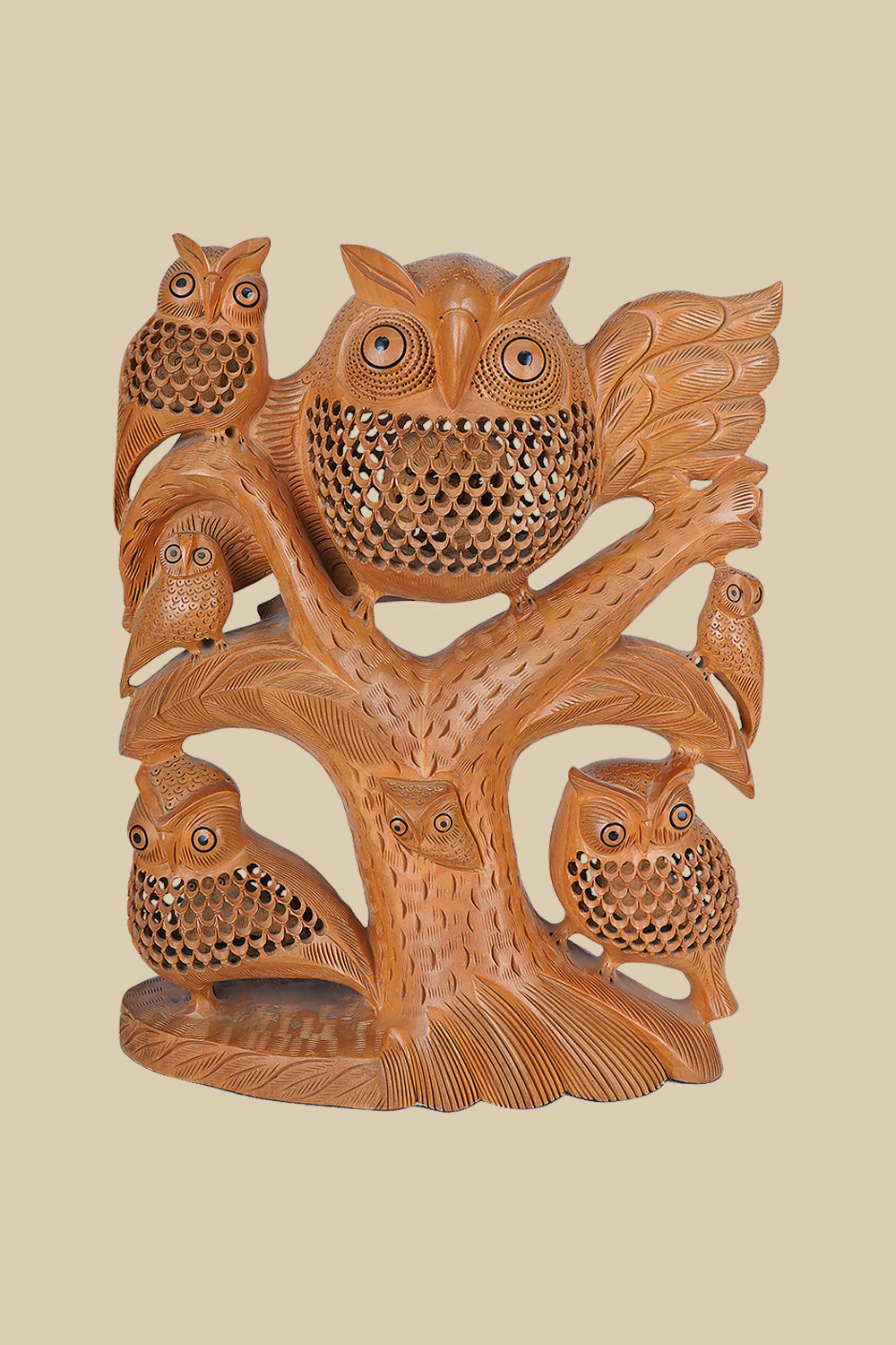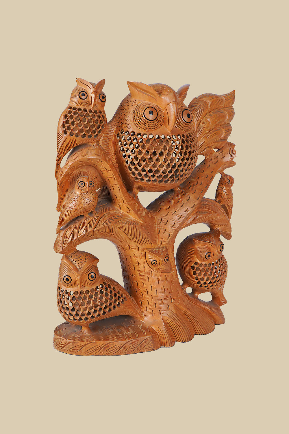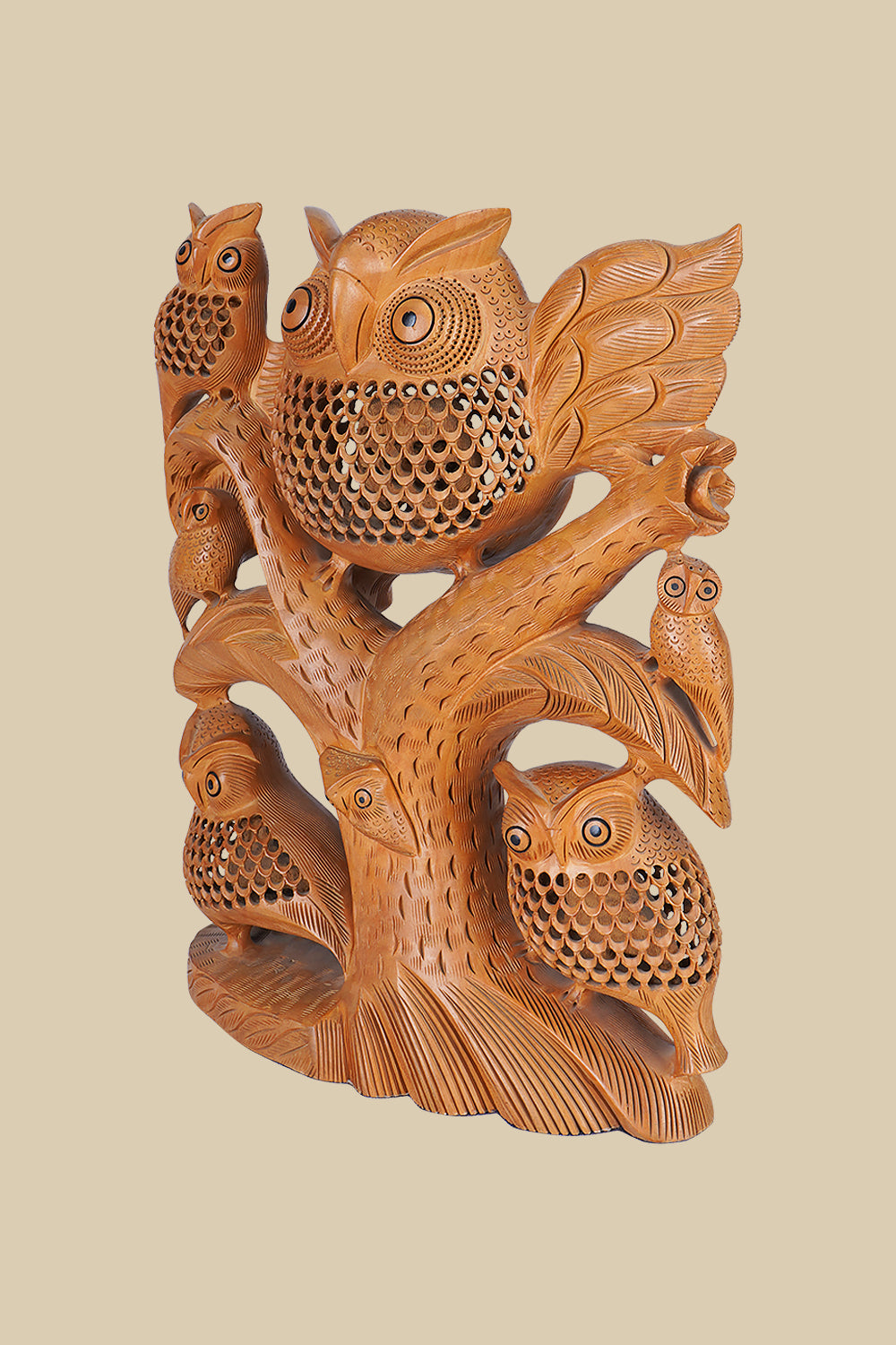 This 32 cm wood carved owl figurine is symbolic of the wisdom and quiet strength that owls have worn throughout history. Hand-carved from solid wood, the owl’s detailed feathers and piercing eyes seem to come alive with every glance. The warm tones of the wood, combined with the finely carved features, create a piece that is as much an artwork as it is a symbol of wisdom passed down through generations..