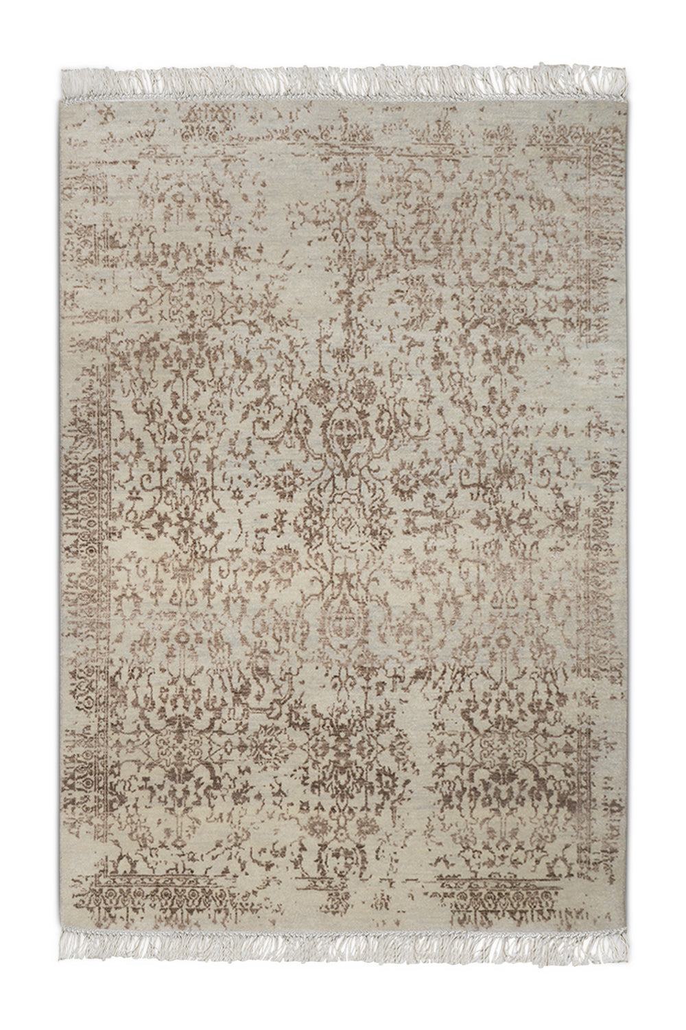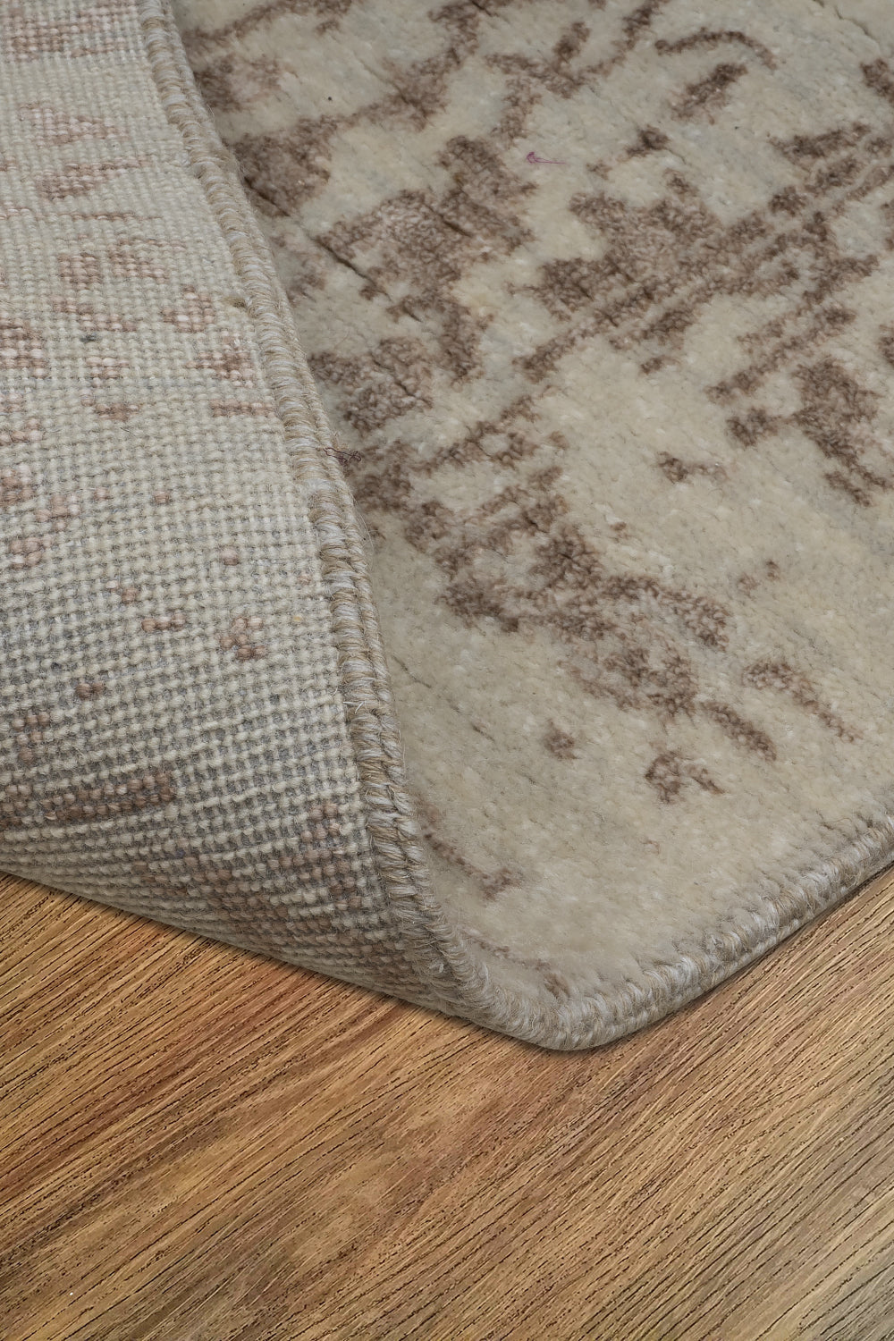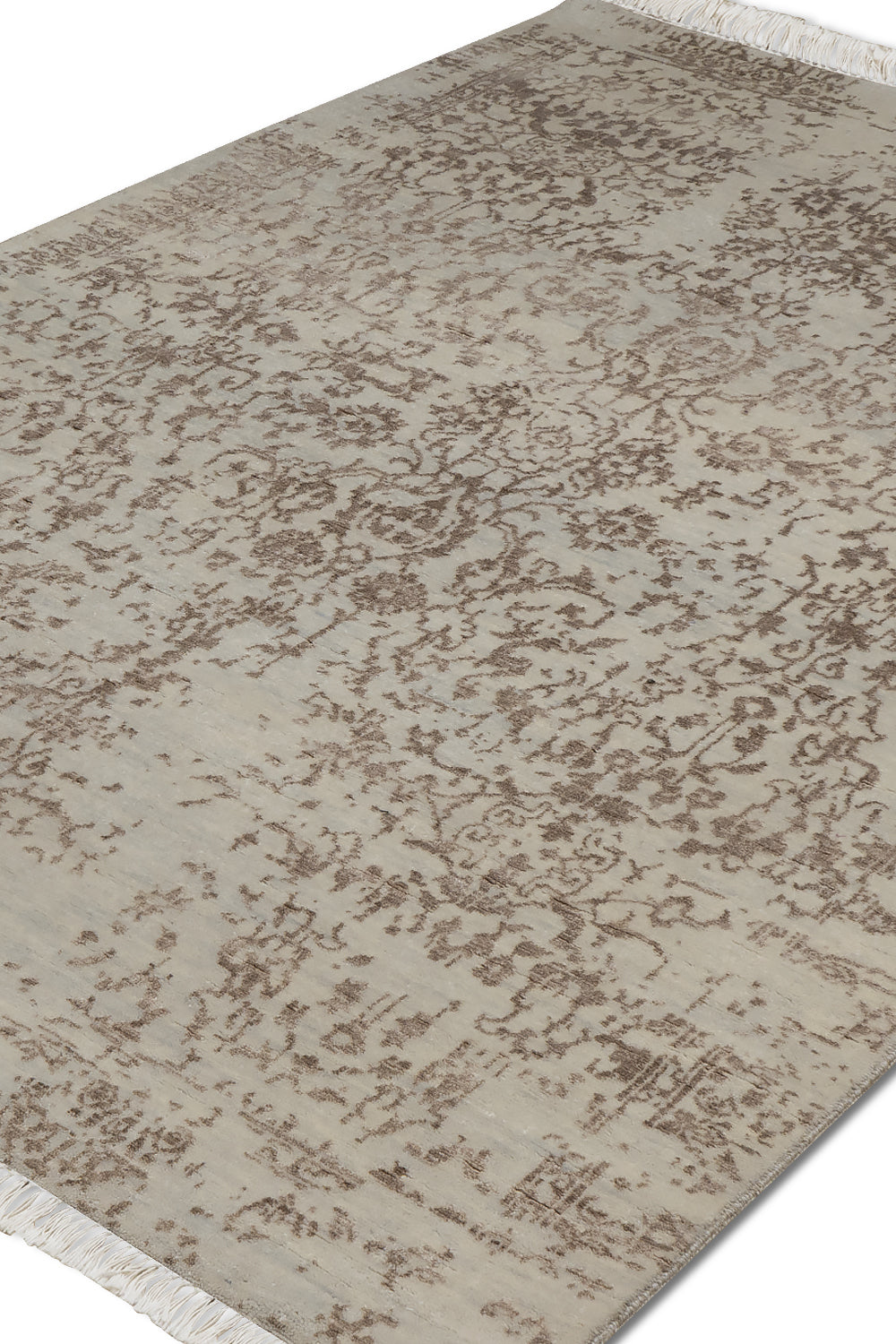 KR00075 Light Grey/Mushroom Brown Hand Knotted Rug