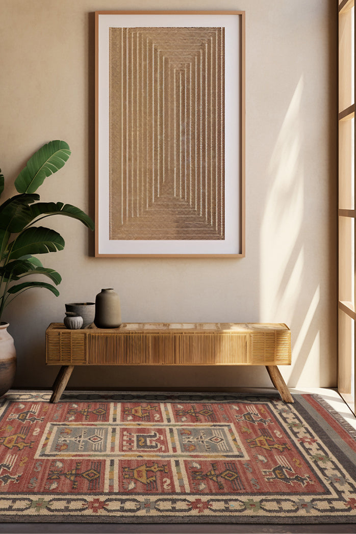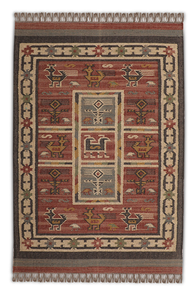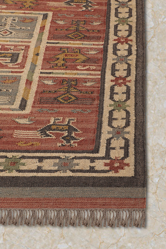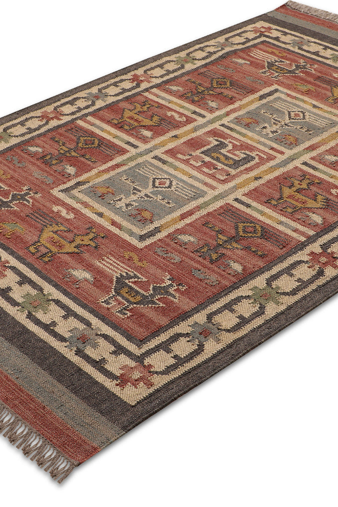 Enhance your home with this rectangular rug, where every weave tells a story of historical depth and modern appeal. The Kilim animal design, rooted in nomadic traditions, complements both minimalist and eclectic interiors with its intricate patterns. Perfect for modern homes, it blends durability with a natural charm, creating a vibrant yet cozy centerpiece. Its earthy tones transform any room, infusing it with a sense of cultural richness and understated elegance. Discover a rug that connects the past’s artistry with today’s living environments.