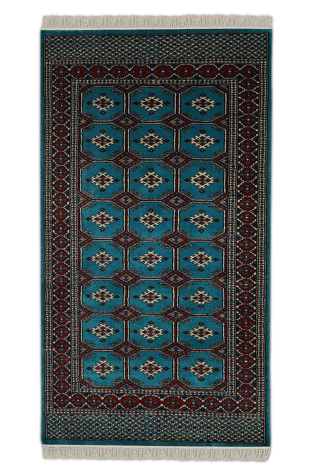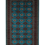 Rang-e-Turkman - Hand Knotted Wool Rug In Turquoise Blue/Red Oxide