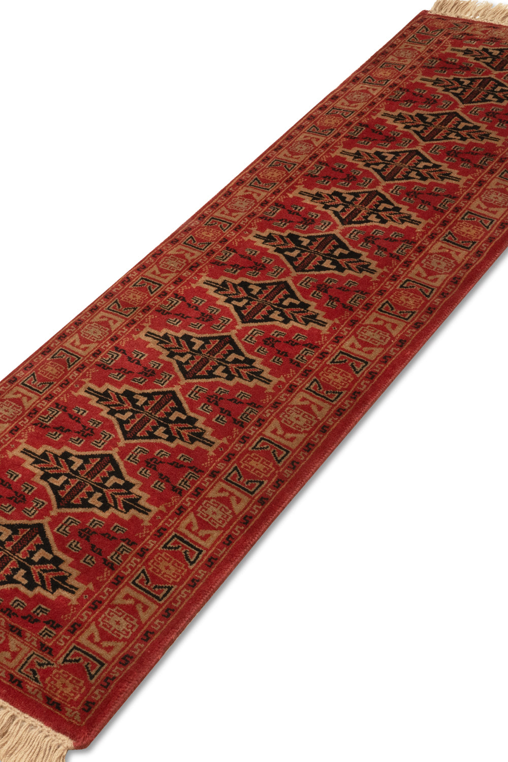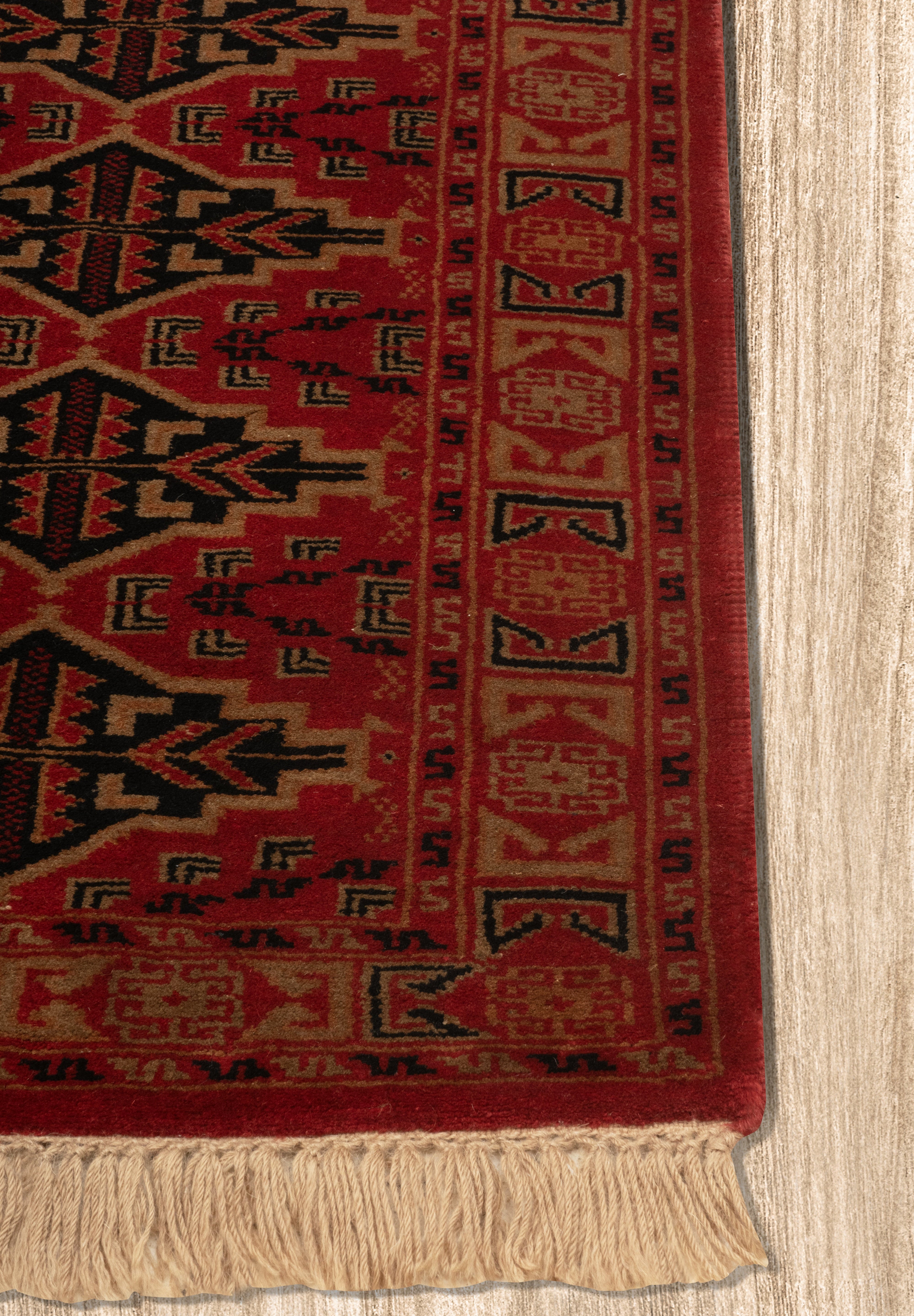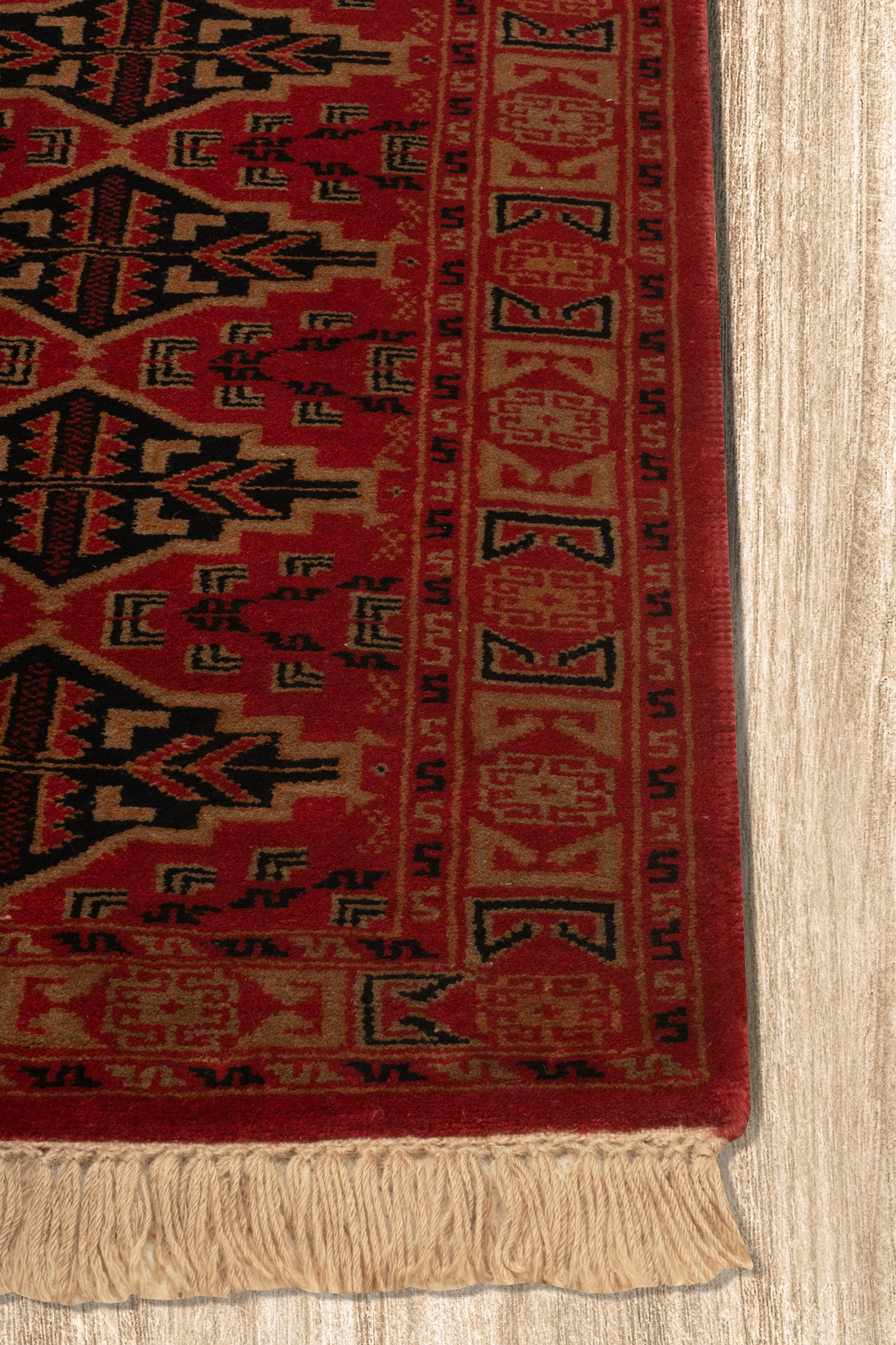 The Path of Colors. Inspired by the raw elegance of traditional tribal patterns, the Rang Raah runner brings a touch of timeless heritage to modern hallways. Its rich reddish-maroon hue evokes the warmth of ancient tales, where bold geometric motifs meet the precision of Indian hand-knotted craftsmanship. Interweaving age-old traditions with contemporary flair, making it an essential piece for those who appreciate culture and authenticity. Made from soft wool, this runner boasts a high pile that feels luxurious underfoot while providing durability. Perfect for narrow spaces, it’s a journey into the legacy of India's finest carpet weavers, preserving the spirit of Tribal Carpets in India, renowned for their skill and creativity.