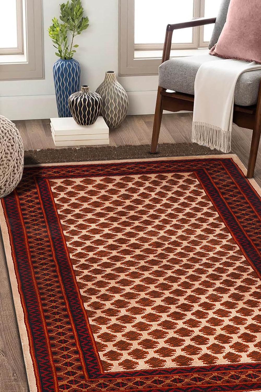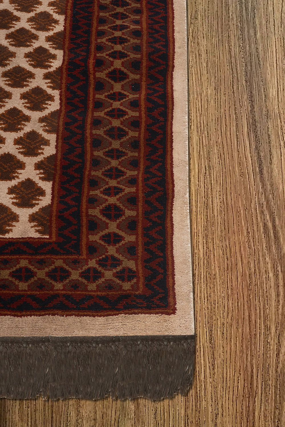 KR00055 Beige/Brick Red Hand Knotted Rug