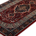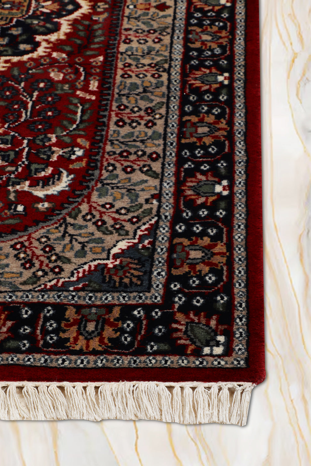 Add a touch of heritage to your space with the Rishaanah rug, a finely handknotted piece from our Virasat Collection that blends traditional beauty with modern versatility. This 3 x 5 ft wool rug, featuring a medium pile with a mild soft texture, showcases intricate floral and medallion motifs in deep maroon glow, rich sapphire shade, and hints of warm taupe. Its design reflects Persian weaving traditions, where such patterns symbolized abundance and spiritual serenity since ancient times, often crafted into Oriental rugs to evoke garden paradises. These motifs, embodying cultural narratives of harmony and eternity, spread through trade routes, influencing textile arts with their timeless appeal. The plush texture makes it ideal for smaller living rooms or bedrooms seeking a classic accent.