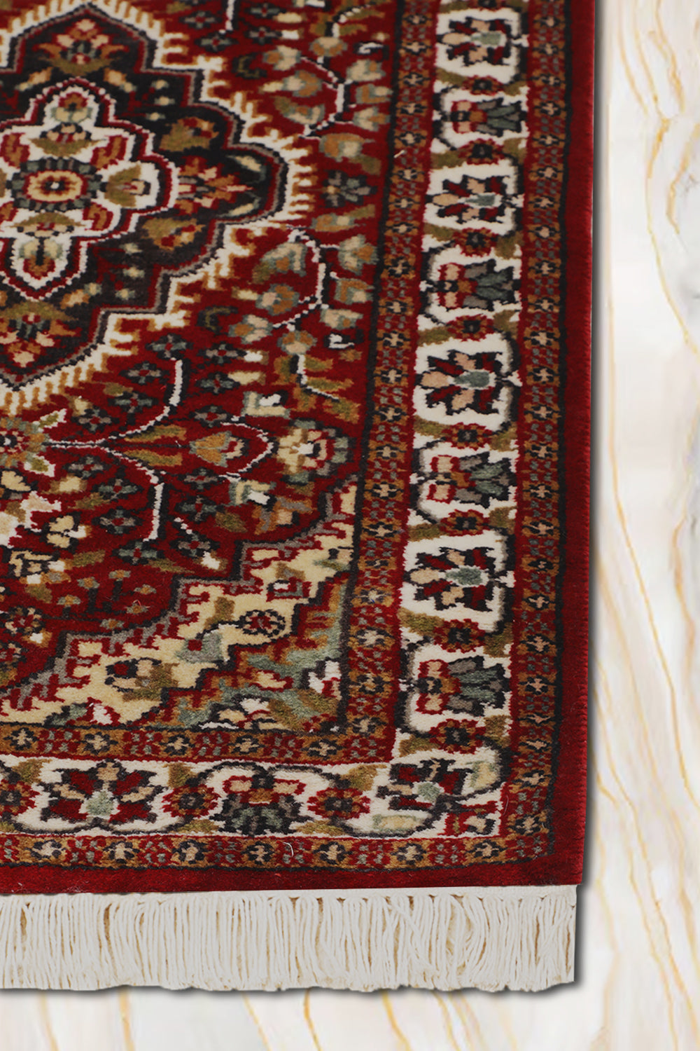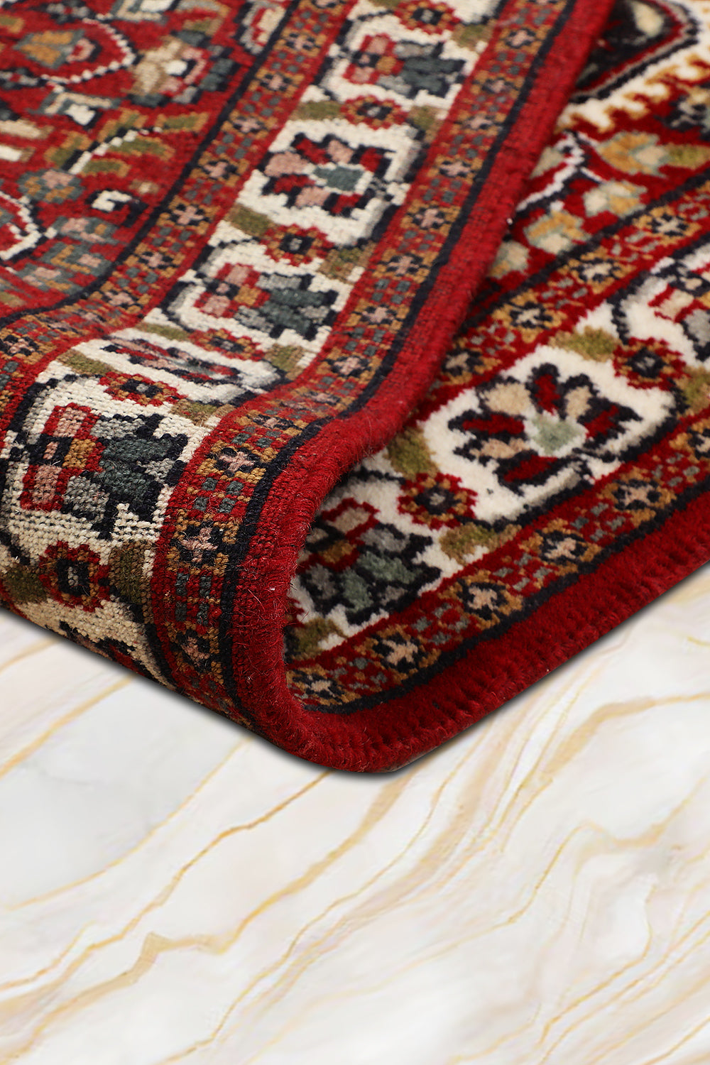 Rishara - Hand Knotted Wool Rug in Red/Cream