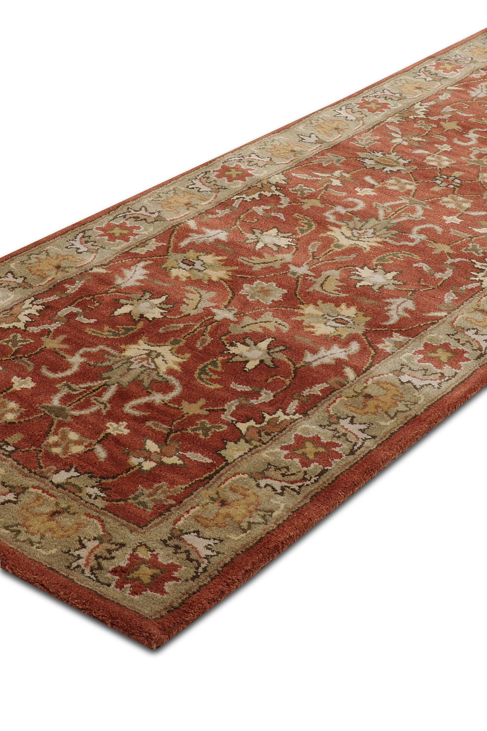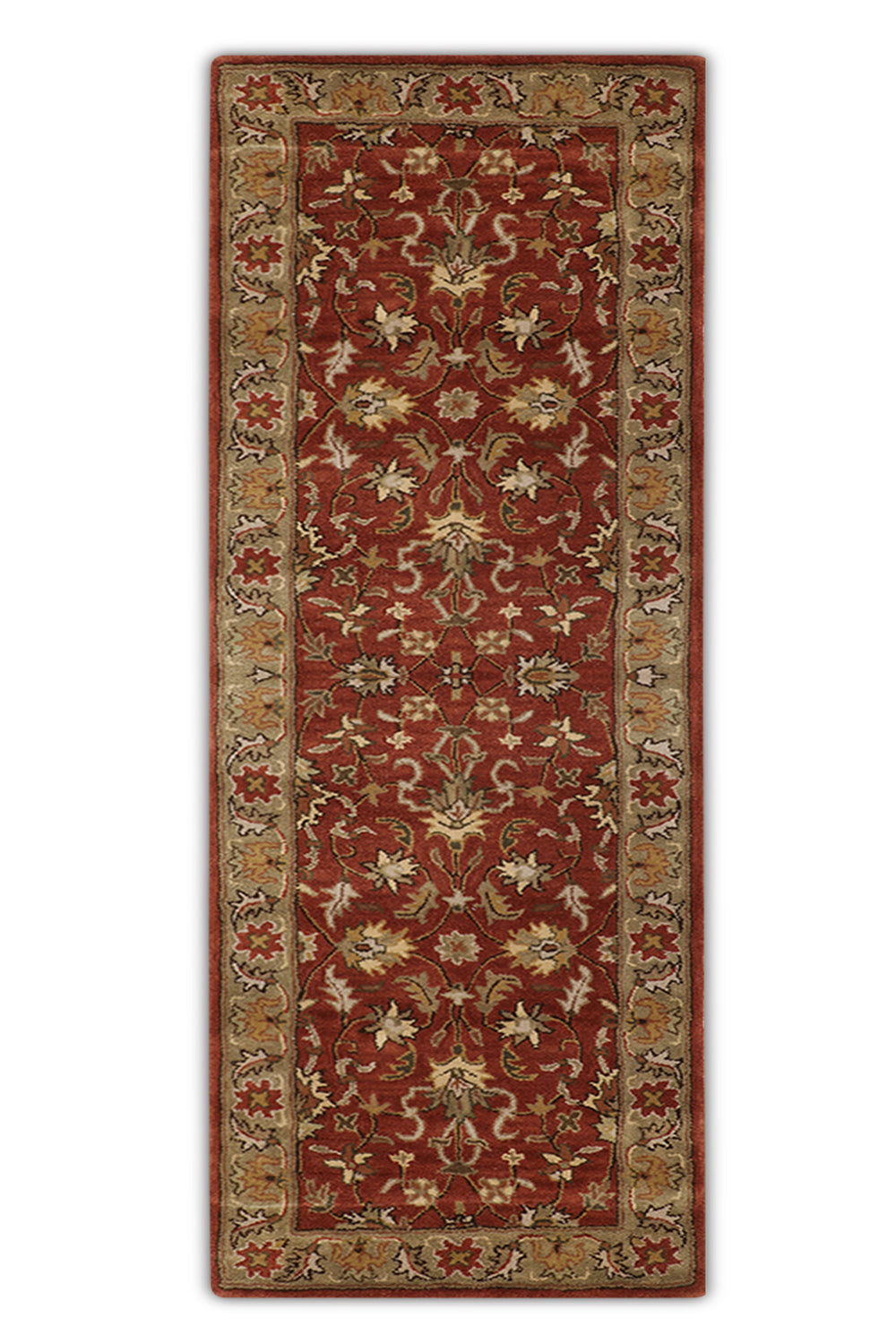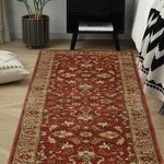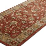 Bring a touch of timeless sophistication to your hallway with the Roshanara rug, a stunning piece from our Chahat Collection that embodies the essence of Oriental craftsmanship. This 2.6 x 8 ft hand-tufted wool runner, featuring a high pile with a mild soft texture, showcases a classic Tree of Life motif with floral and vine borders in rich terracotta rust, muted sage green, and hints of warm amber. Its design draws from Persian and Central Asian traditions, where the Tree of Life symbolized eternal life and spiritual connection since the 16th century, often woven into rugs for sacred and domestic spaces. These patterns, reflecting cultural narratives of growth and divinity, influenced textile arts across trade routes, blending heritage with lasting allure. The plush feel underfoot makes it perfect for hallways seeking a warm, traditional accent.