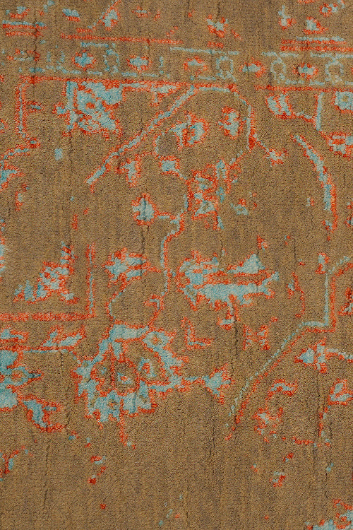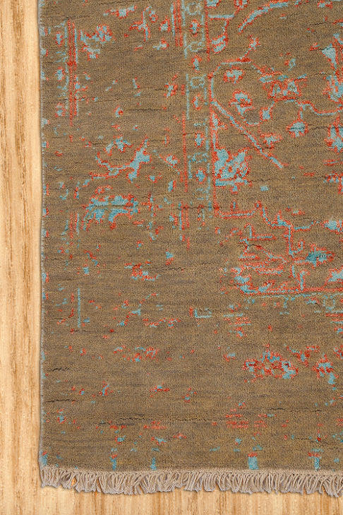 Saanjh - Hand Knotted Wool Rug In Grey/Orange