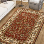 Bring a touch of timeless artistry to your home with the Shadab rug, a meticulously crafted piece from our Chahat Collection that celebrates Oriental heritage. This 5 x 8 ft hand-tufted wool rug, featuring a high pile with a mild soft texture, showcases a classic Tree of Life motif with floral borders in warm terracotta rust, creamy ivory blush, and hints of burnt sienna. Its design draws from Persian and Central Asian traditions, where the Tree of Life symbolized eternal life and spiritual connection since the 16th century, often woven into rugs for sacred and domestic spaces. These patterns, reflecting cultural narratives of growth and divinity, influenced textile arts across trade routes, blending tradition with enduring beauty. The plush feel underfoot makes it ideal for living rooms or bedrooms seeking a meaningful accent.