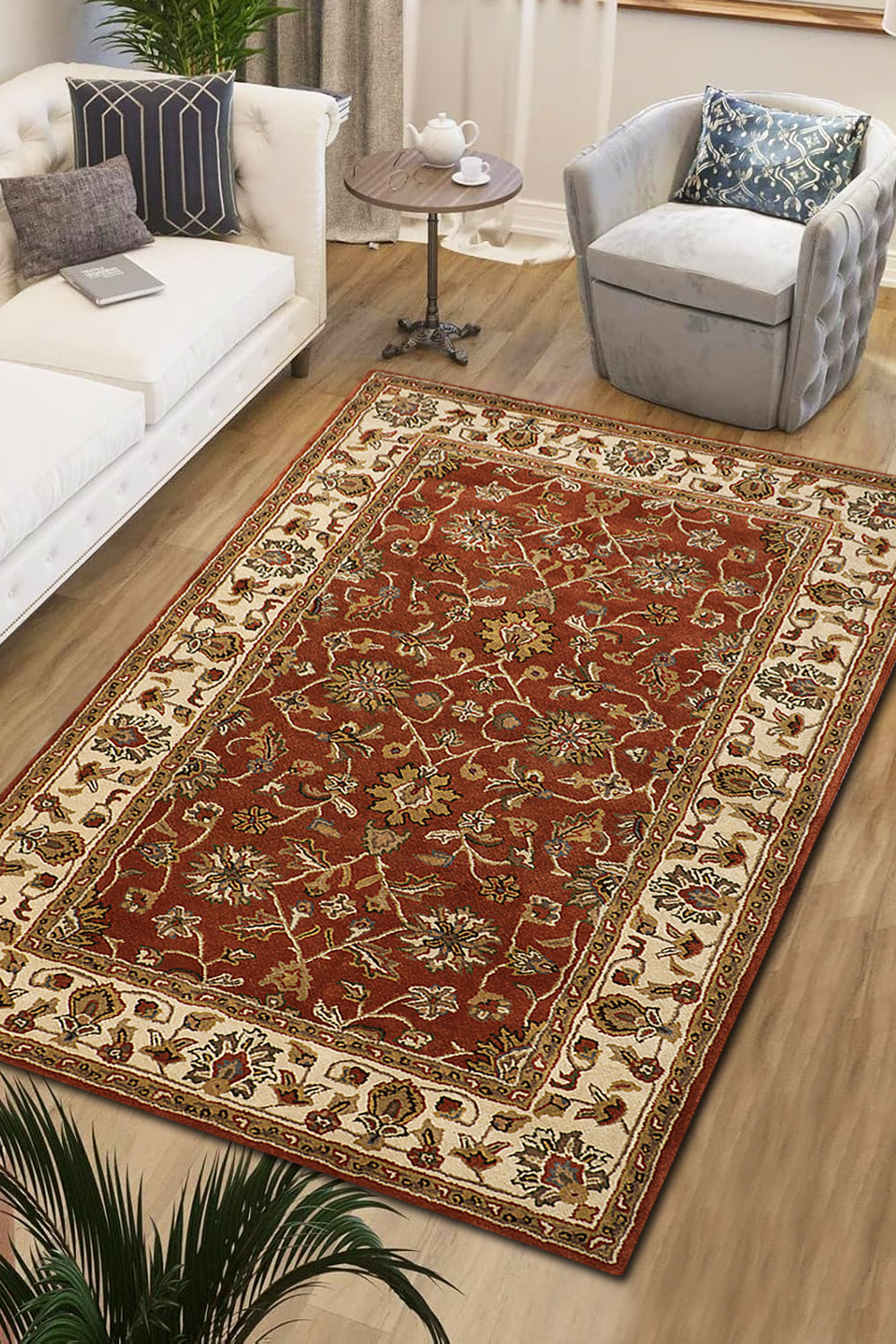 Shadab - Hand Tufted Wool Rug In Rust/Cream
