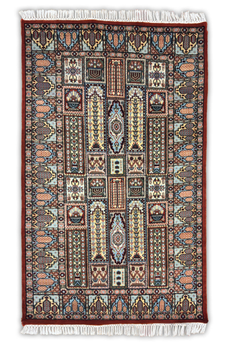 Shatranj - Hand Knotted Wool Rug in Rust Red/Pale Blue