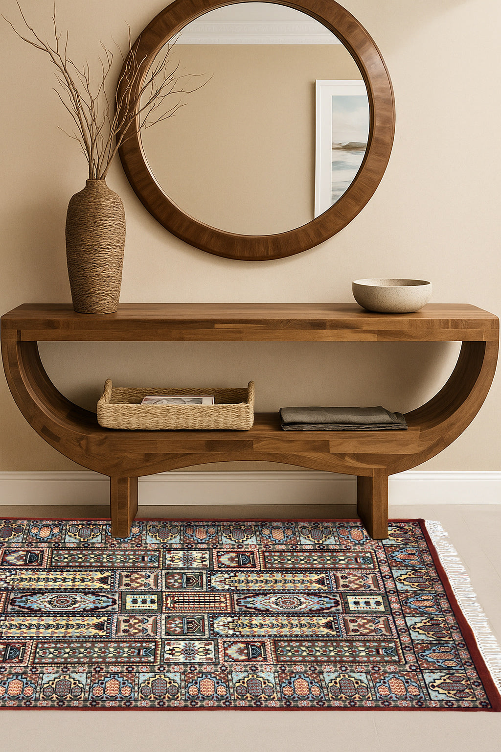Perfect for living rooms or bedrooms, Shatranj becomes the anchor of a space. Its interplay of colour and form feels regal yet approachable, making it ideal for interiors that celebrate tradition while welcoming modern sensibilities.