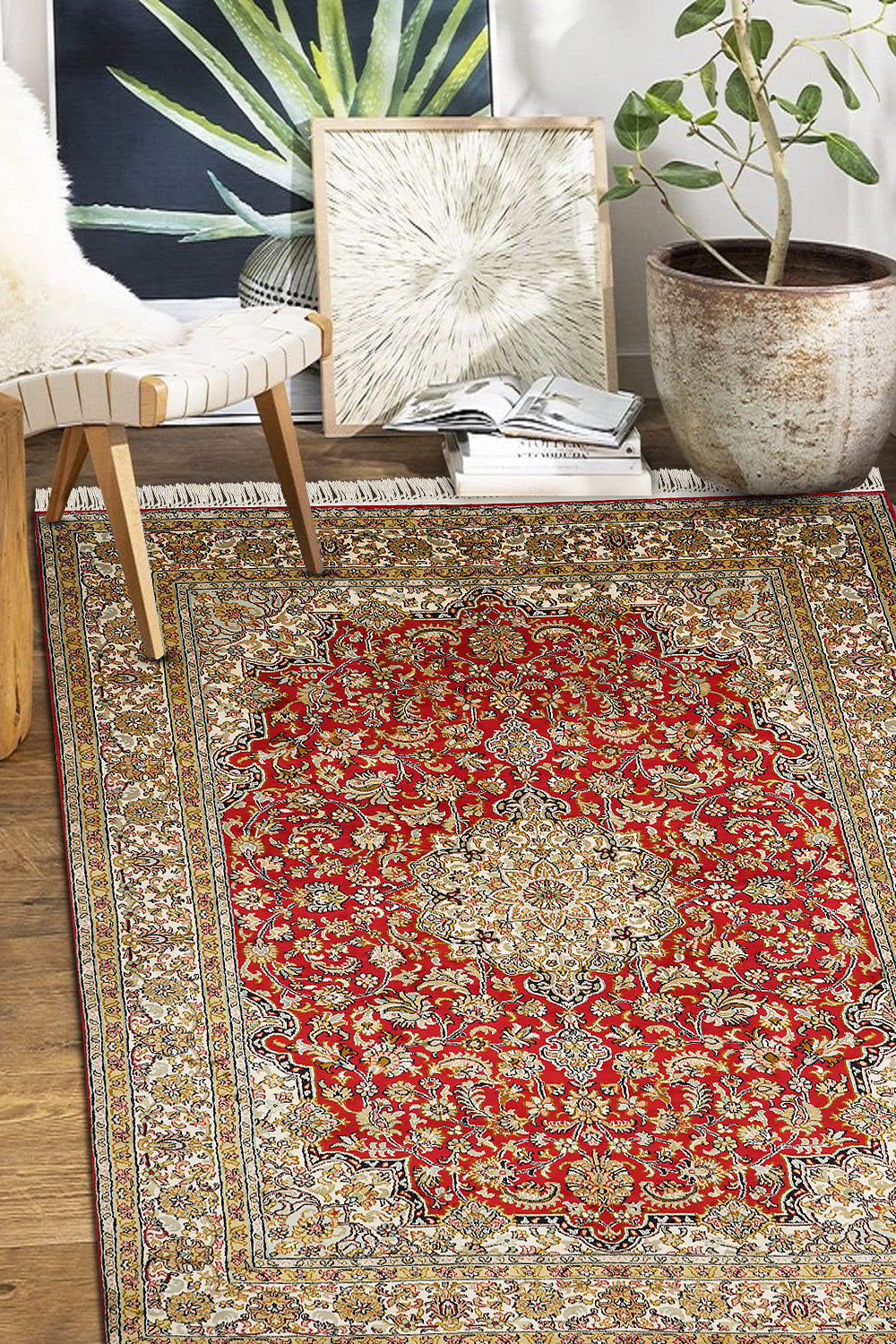 This Indian traditional carpet not only honors the legacy of Isfahan designs but also celebrates Kesari Home’s reputation as a legacy carpet designer in India. Whether anchoring a room or accentuating a space, this royal rug infuses timeless elegance into modern homes, bridging history with contemporary living.