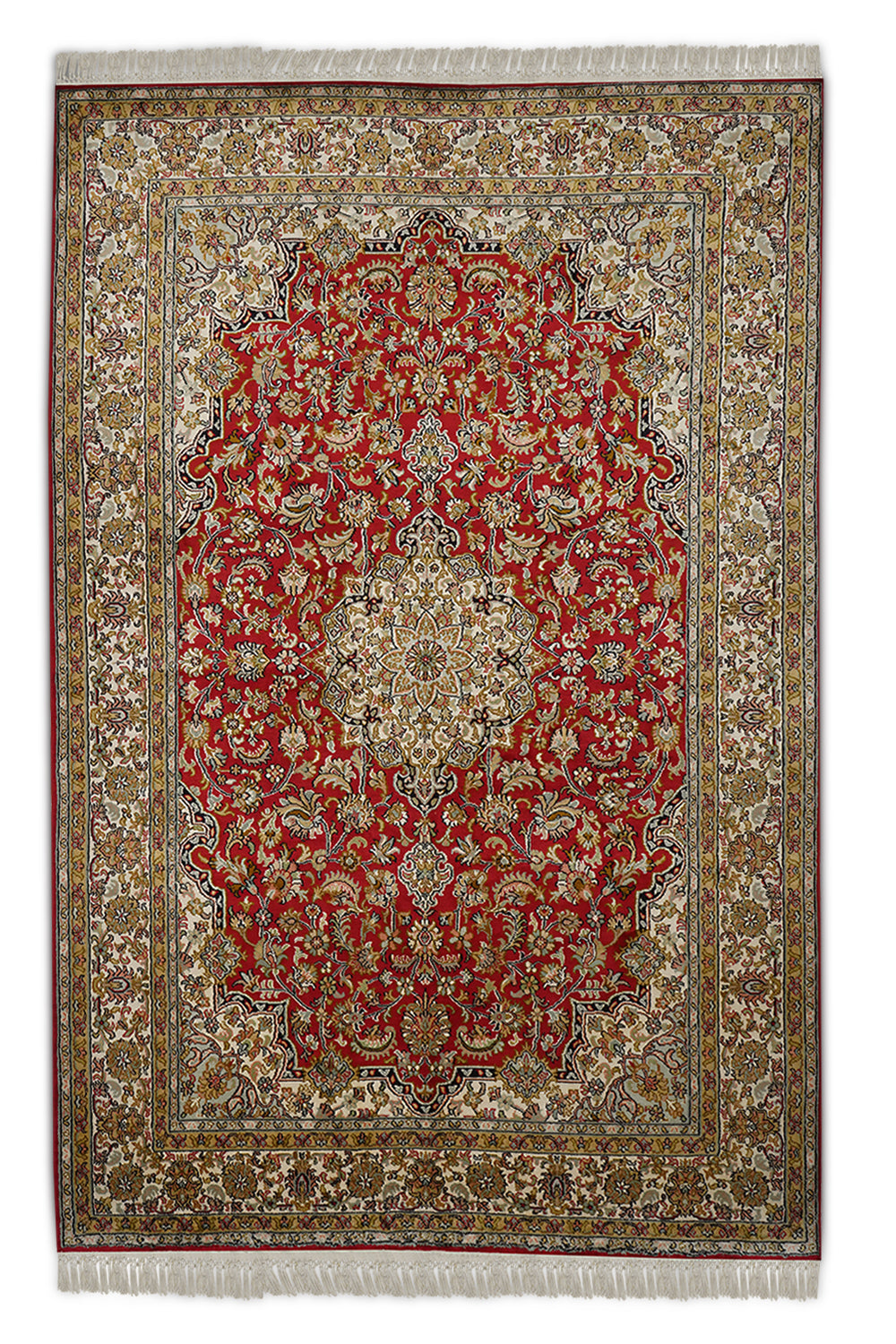 Shokh-e-Farhang - Hand Knotted Silk Rug In Red/Cream
