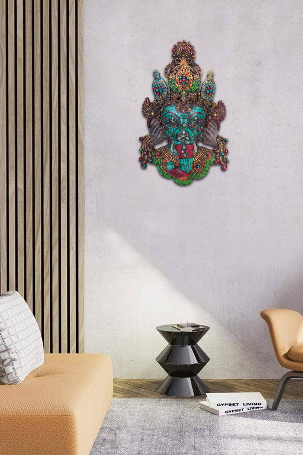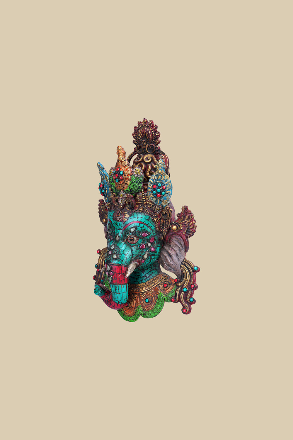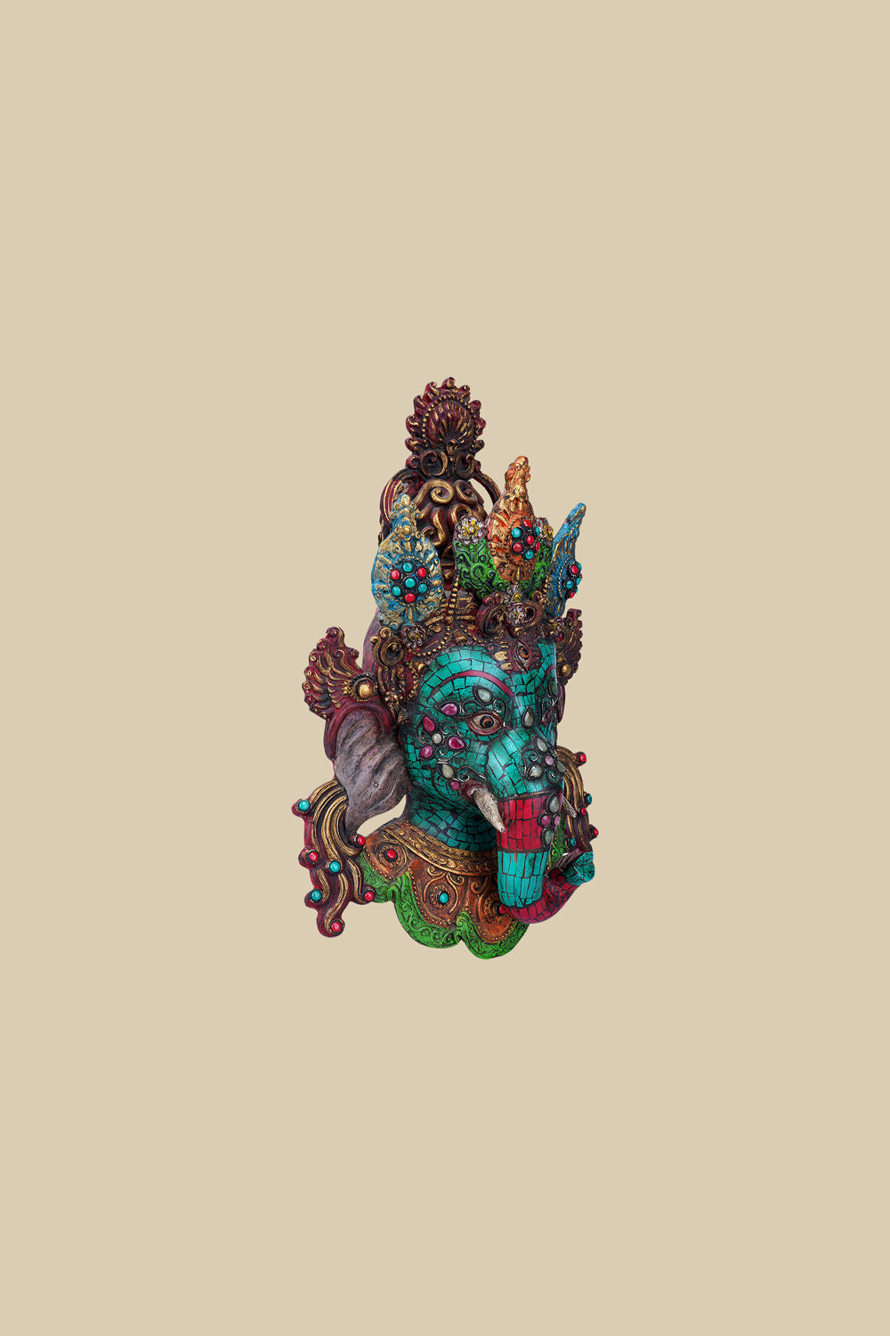 Placed on your wall or as part of a spiritual collection, this mask is more than just a decorative piece. It invites you to reflect on the virtues of wisdom and prosperity while adding a bold, spiritual presence to your home. As a decorative statue, the Ganesha Mask is a remarkable representation of Hindu iconography and a beautiful addition to any space, combining traditional craft with profound symbolism.