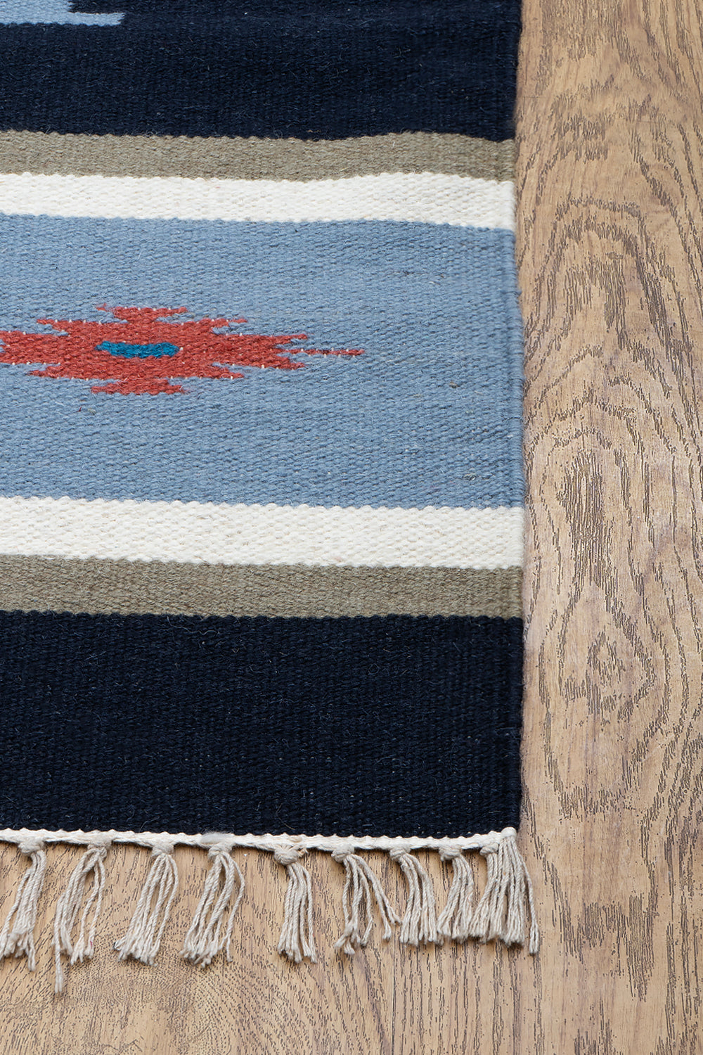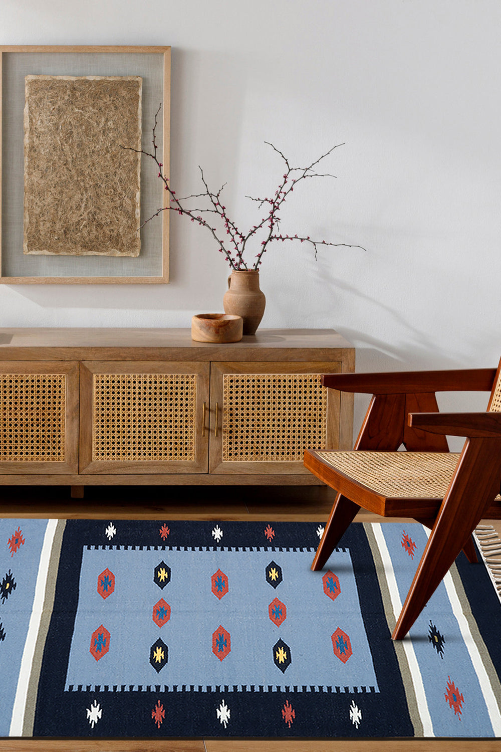 KR00104 Light Blue/Navy Blue Hand Woven Rug
