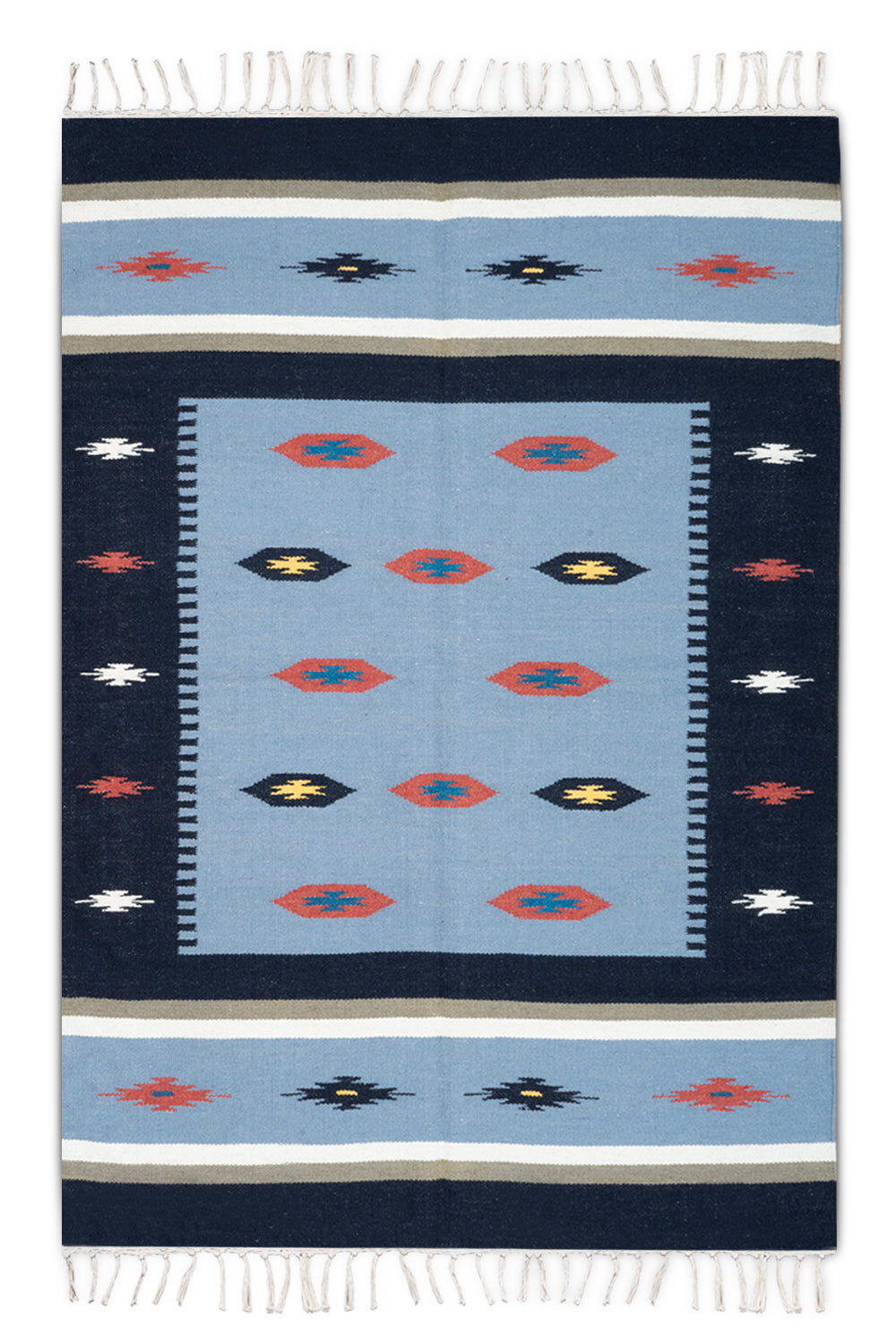 Sitara - Hand Woven Cotton Rug In Light Blue/Navy Blue