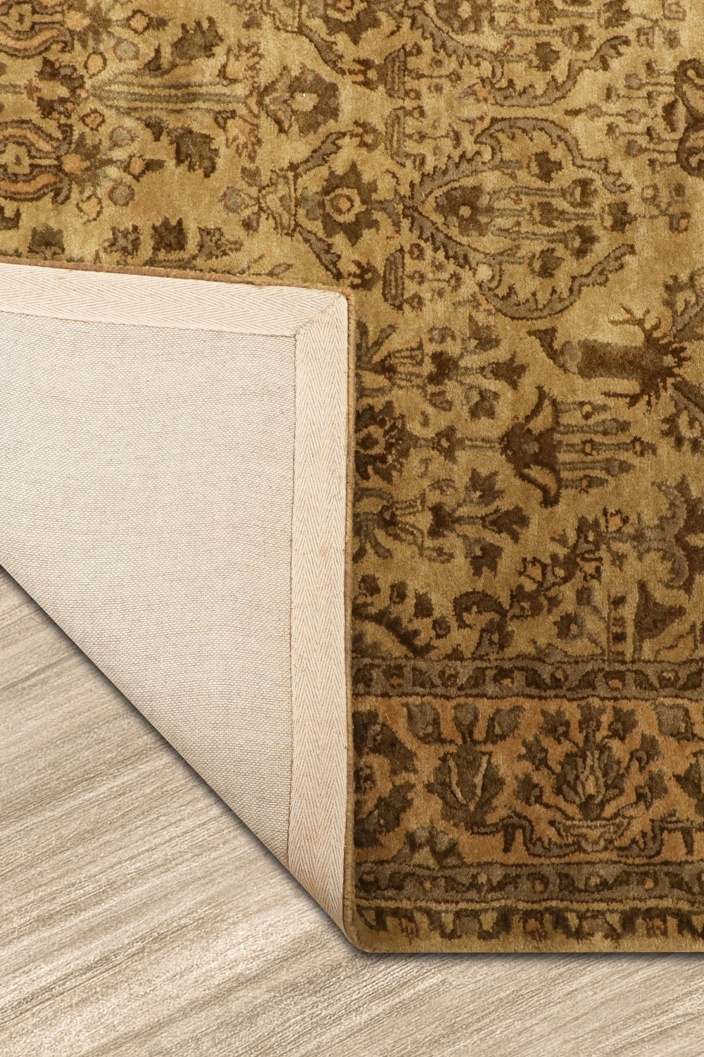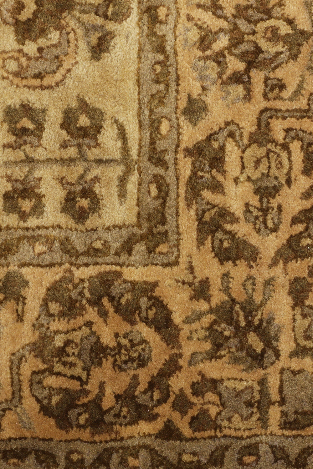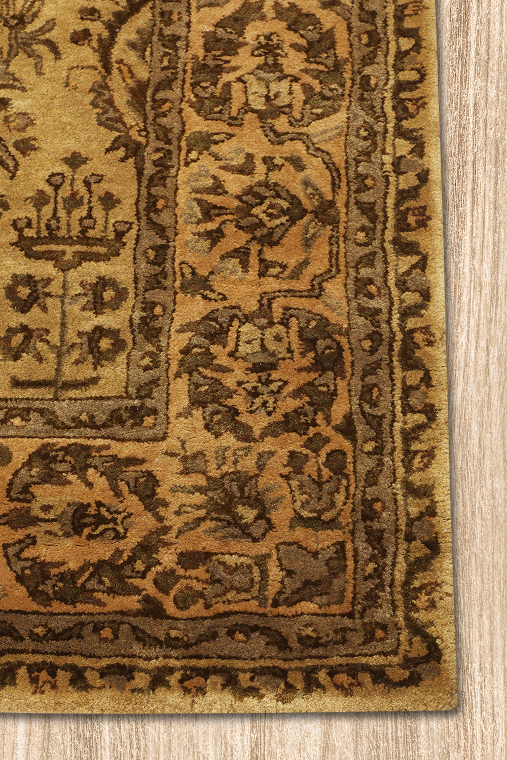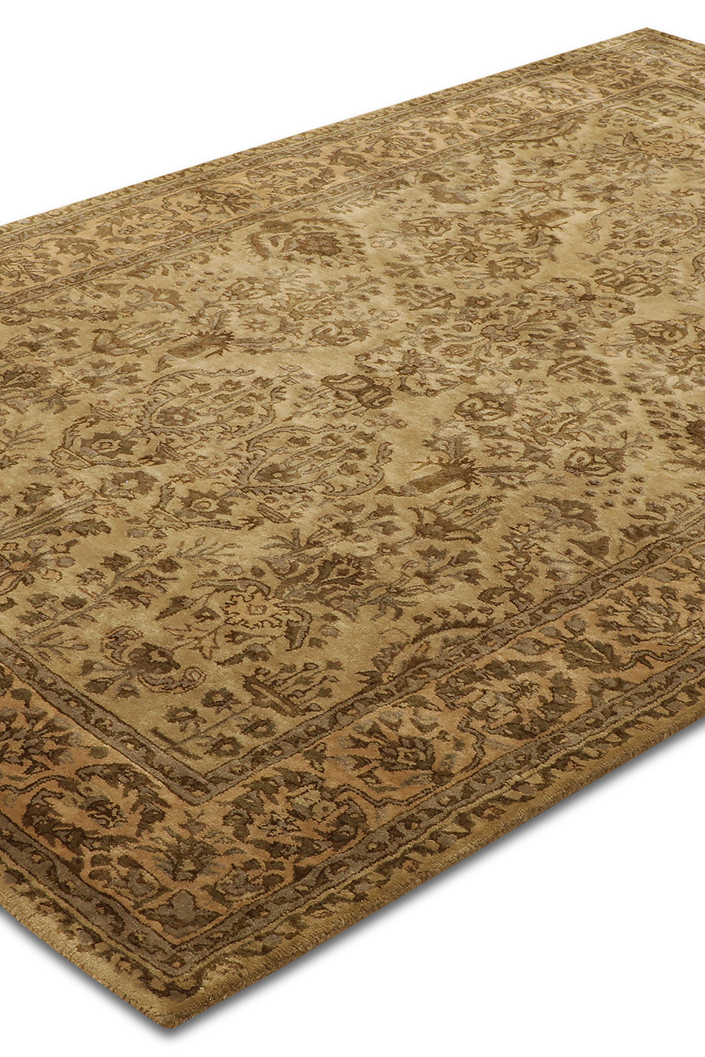 Inspired by the floral motifs of Jaipur, this design captures the rhythm of nature, each petal and vine reminiscent of Mughal gardens in full bloom. The delicate patterns are balanced against the neutral, grounded tones, making this carpet a versatile statement piece that complements a variety of interior styles. Crafted from high-quality wool, its mild softness and high pile height create an inviting texture underfoot. The combination of camel brown and mushroom shades makes this piece a true work of art, capable of transforming any space into a sanctuary of refinement and comfort.