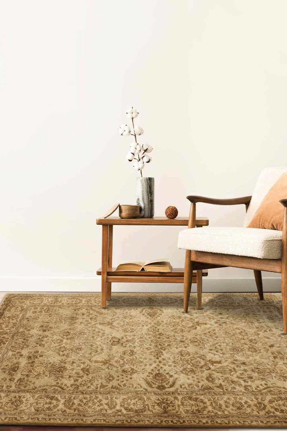 In the heart of Kesari Home’s Chahat Collection lies the Jaipur Floral Design, a masterpiece that blends traditional Indian artistry with timeless elegance. This hand-tufted rug, rendered in serene camel brown and mushroom tones, brings out the earthy richness of Rajasthan's royal heritage. Designed to adorn living rooms and bedrooms, its understated sophistication adds warmth and character to modern homes.