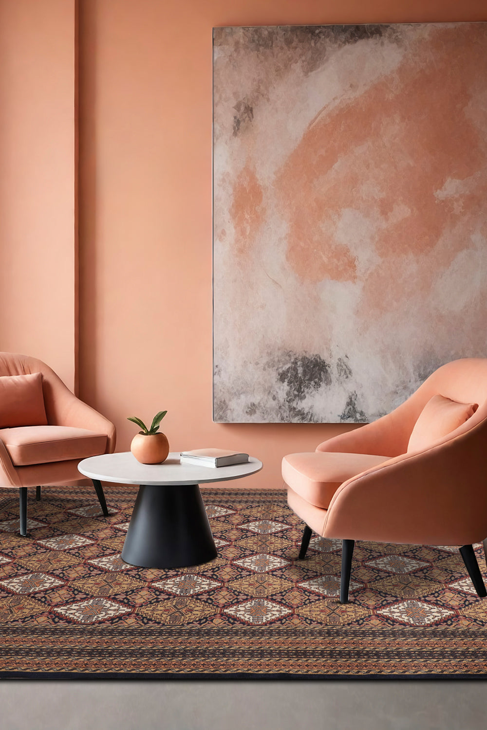Enhance your home with this rectangular rug, where every knot weaves a story of historical depth and modern appeal. The tribal diamond design, rooted in ancient nomadic symbolism, complements both rustic and contemporary interiors with its intricate patterns. Ideal for modern homes, it blends durability with a textured aesthetic, creating a striking yet cozy focal point. Its earthy tones transform any room, infusing it with a sense of cultural richness and timeless sophistication. Discover a rug that connects the past’s craftsmanship with today’s living spaces.